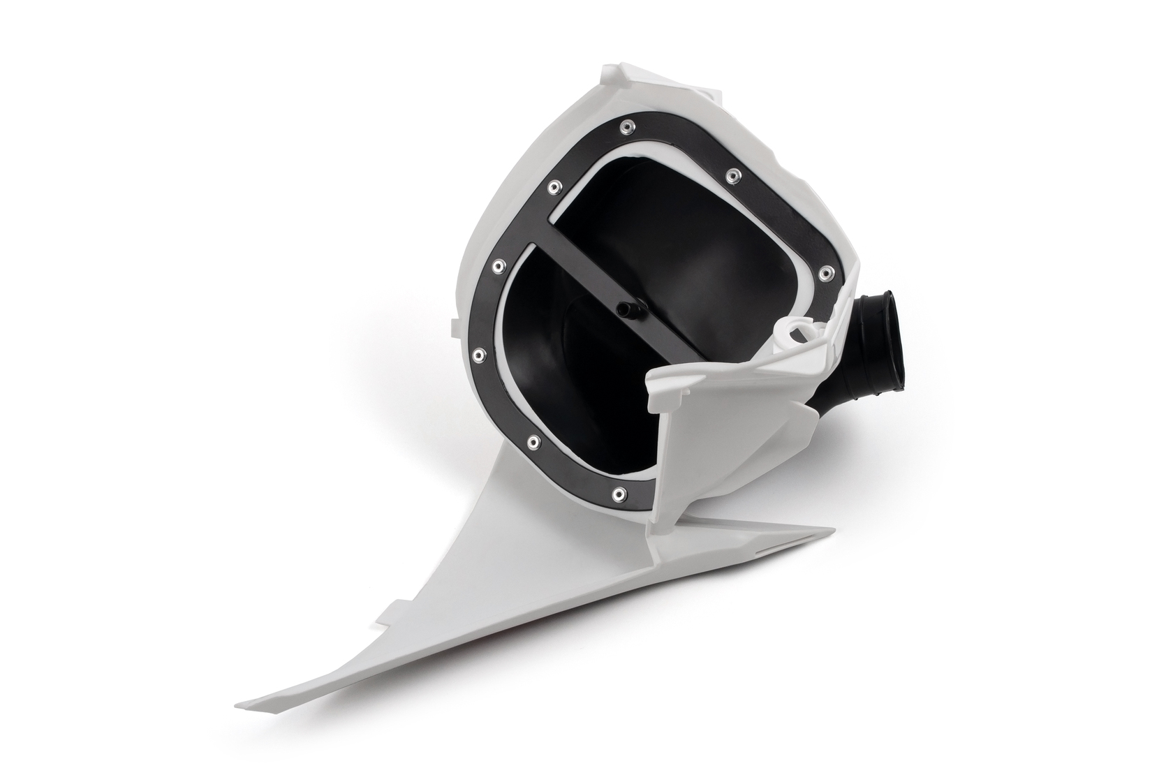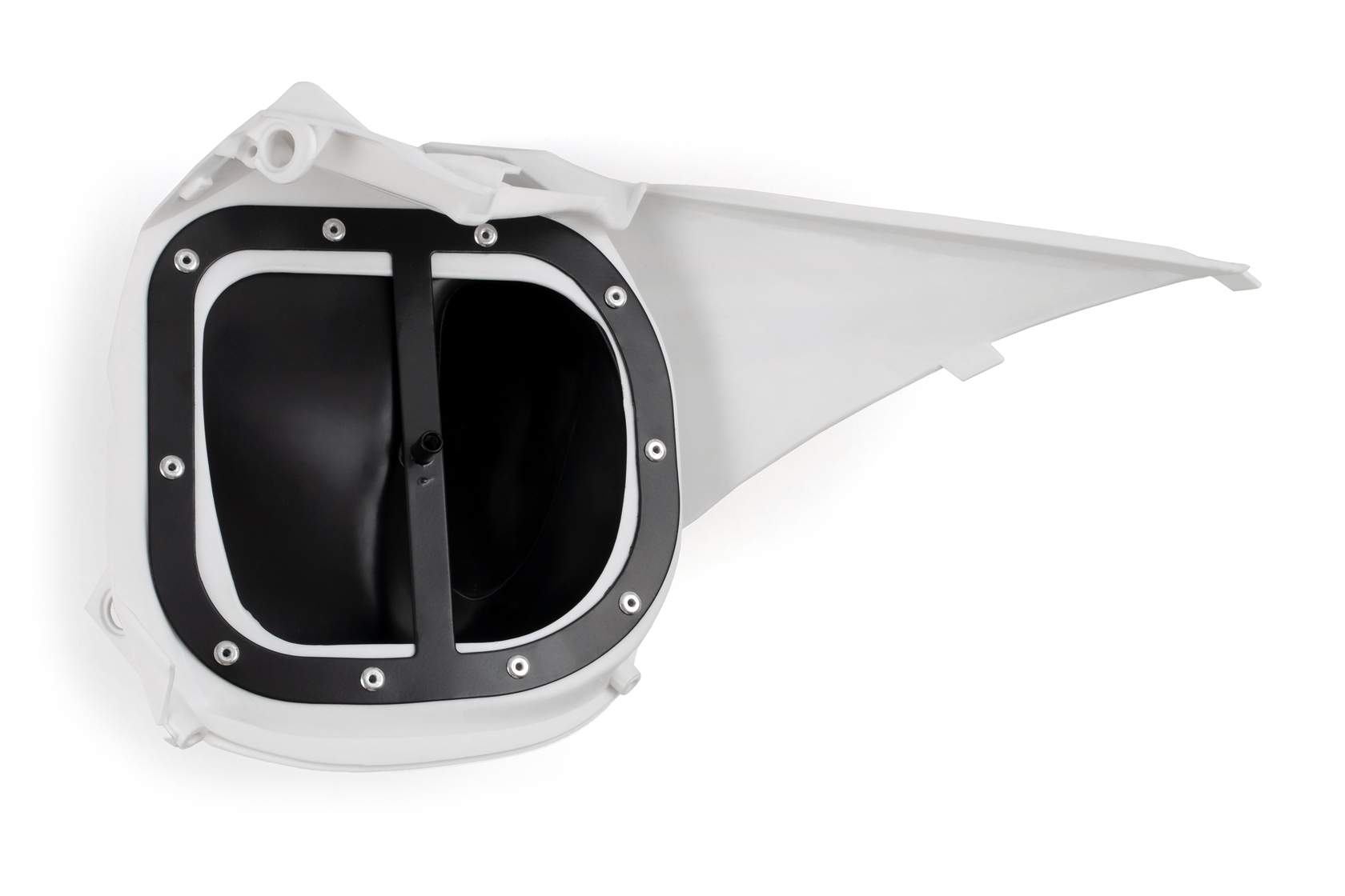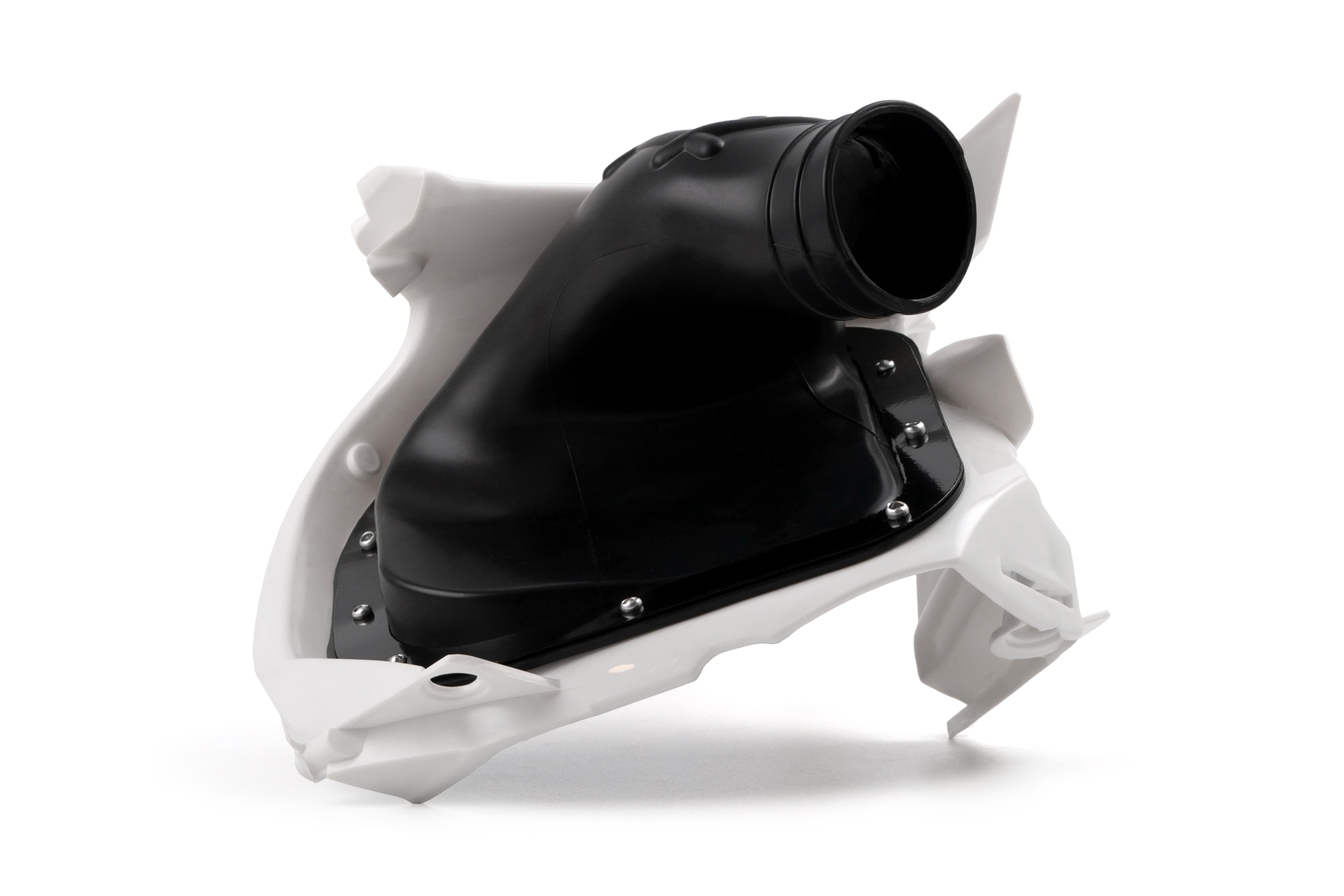 Корпус воздушного фильтра с приёмным патрубком, белый (под пластик типа KTM SX85 2013–2016)