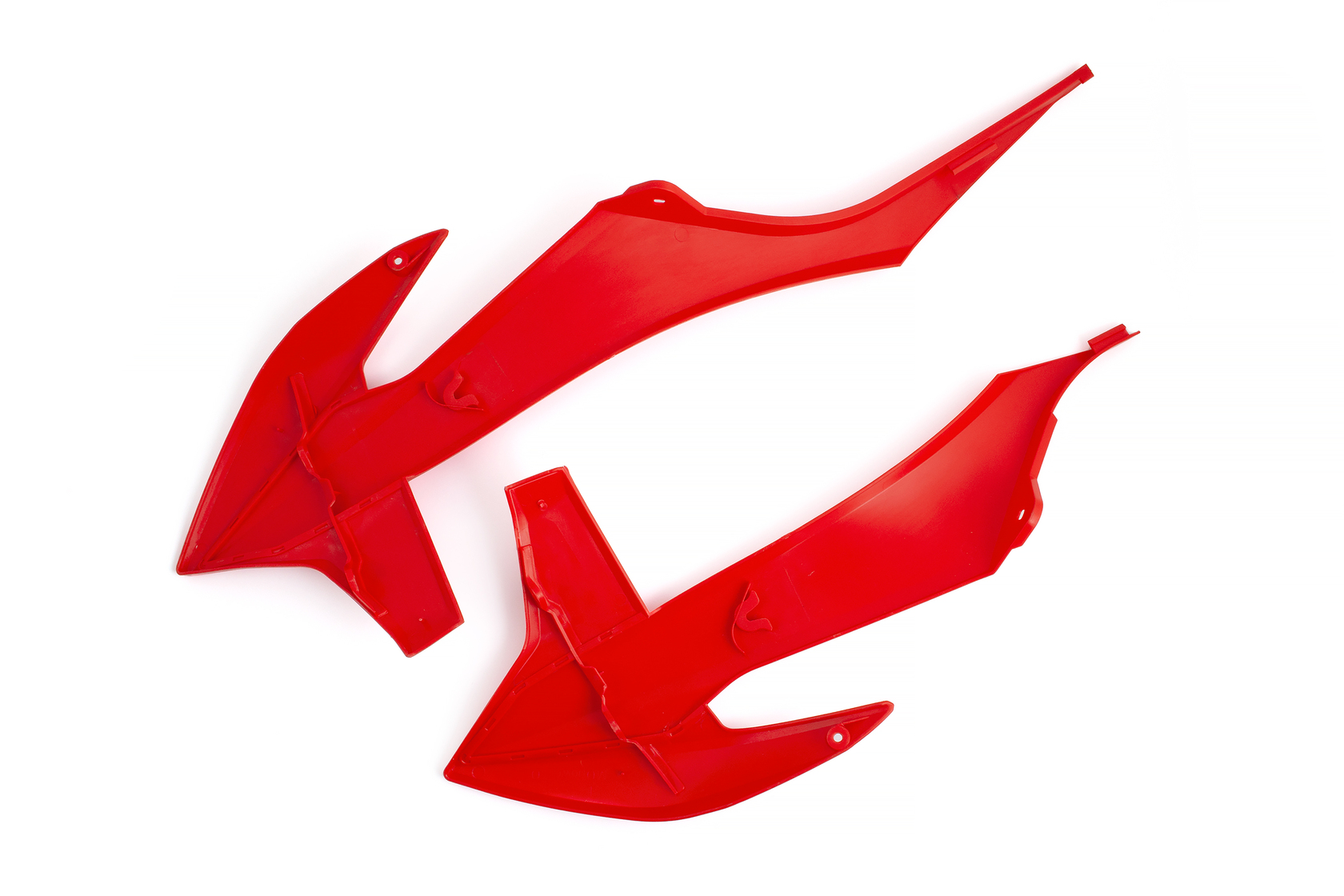 Пара красных передних обтекателей для мотоциклов KTM 2020-2023 года, а также аналогичных китайских моделей на раме K8 (KEWS, AJ1, BRZ и др). Изготовлены из прочного и эластичного пластика под тип KTM 20-23г. Полный аналог оригинальной детали KTM с артикулом 79108054000. Обеспечивают отличную защиту и обновляют внешний вид байка, установка производится без доработок на штатные крепления.