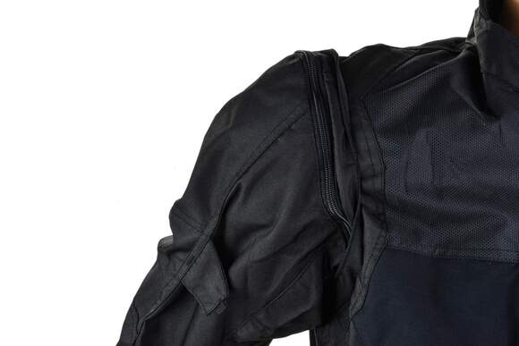 • Предварительно изогнутые руки на молнии и большая регулируемая вентиляция на молнии