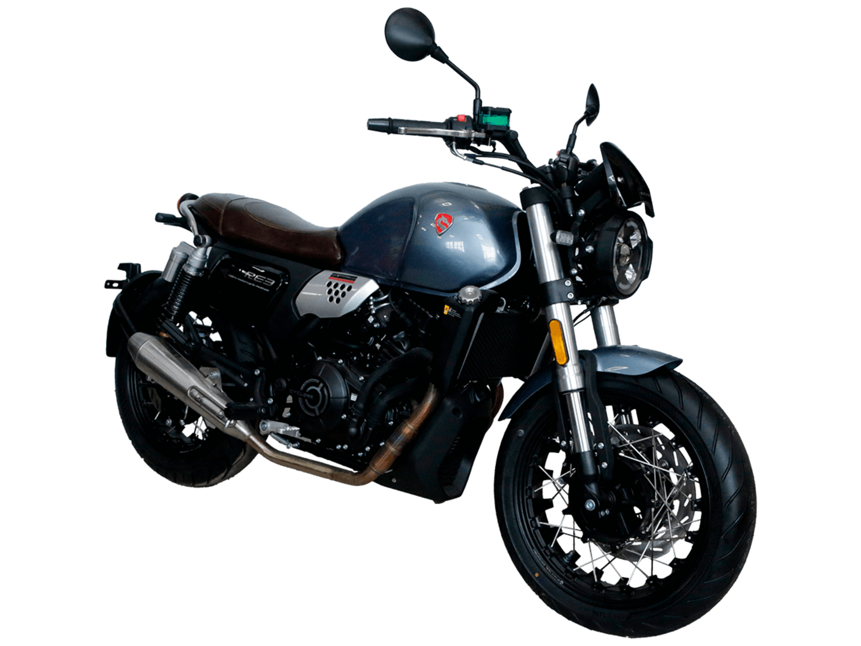 CYCLONE RE3 (SR400) – классик, в котором подчёркнутая простота объединяется с современными технологиями.Двухцилиндровый четырёхтактный двигатель объёмом 401 см3 выдаёт 43 л.с. на 9500 об/мин. Максимальный крутящий момент достигается на 8000 об/мин и составляет 34 Н·м. Инжекторный впрыск топлива с инжектором BOSCH увеличивает топливную экономичность, а также позволяет добиться высокой приёмистости и неприхотливости агрегата. Жидкостная система охлаждения не допустит перегрева двигателя даже при самом агрессивном вождении. На мотоцикл установлена 6-ступенчатая механическая коробка передач.Максимальная скорость мотоцикла составляет 140 км/ч.RE3 оснащён классическими спицованными колёсами диаметром 17 дюймов. Колёса обуты в бескамерные покрышки TIMSUN. С неровностями дороги эффективно справляются регулируемая телескопическая вилка перевёрнутого типа спереди и маятник с двумя амортизаторами сзади. Ход передней подвески составляет 110 мм, задней – 81 мм. Эффективное и безопасное замедление с любых скоростей обеспечивают гидравлические дисковые тормоза с ABS спереди и сзади.Клиренс мотоцикла составляет 145 мм. Объём топливного бака – 19 л. Снаряжённая масса – 186 кг.Из дополнительного оборудования можно выделить USB-порт, подсветку пультов и датчики давления в шинах.Мотоцикл сочетает в себе отличные технические характеристики, комфорт и надёжность, что позволяет вам ощутить настоящую свободу на любой дороге.