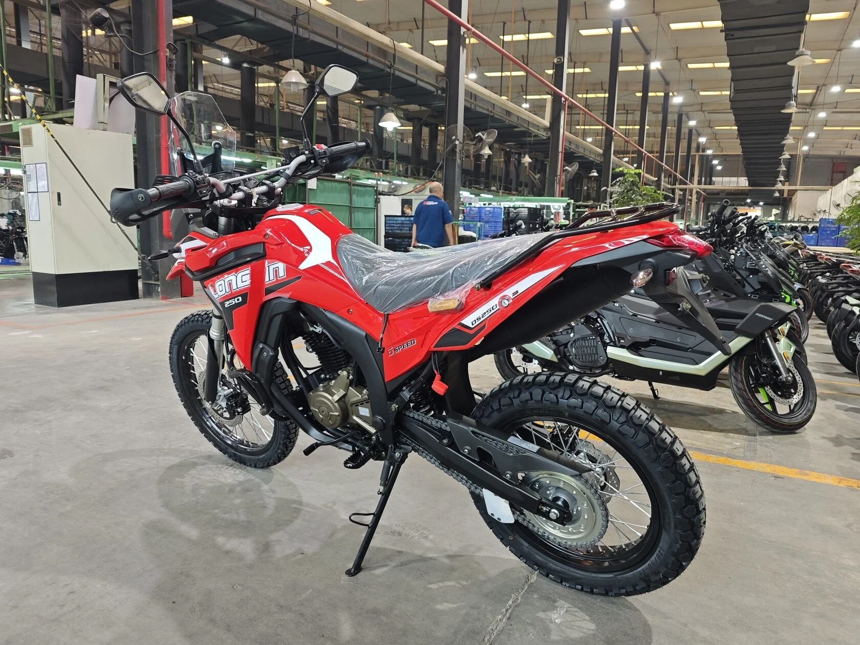 Loncin DS 250 - туристический эндуро.Создан на базе раллийного мотоцикла VOGE 300Rally. Современная жёсткая диагональная рама позволяет стабильно управлять мотоциклом на бездорожье, а продвинутая диодная оптика и ветрозащита – комфортно передвигаться по трассе. Это серьёзная и сбалансированная туристическая техника для мотопутешествий по любым дорогам. Надёжный новый двигатель собственной разработки Loncin, презентованный в 2023 году: 4х-клапанный, на воздушно-масляном охлаждении, с балансиром-эксцентриком и 6-ступенчатой коробкой передач.Каждый из этих мотоциклов полностью отвечает своему предназначению – быть верным и надёжным компаньоном для решения поставленных задач. Для энергичных и рациональных людей, которые ценят время, комфорт, экономичность.Все три модели отлично подходят для новичков – открывая двери в разные классы мотоциклов. Один из этих мотоциклов подойдёт и тому, кто всегда стремится выбирать неприхотливость, надёжность и комфорт за лучший ценник.Спецификация мотоцикла Loncin DS250 Rally:– Модель: Loncin DS 250 Rally