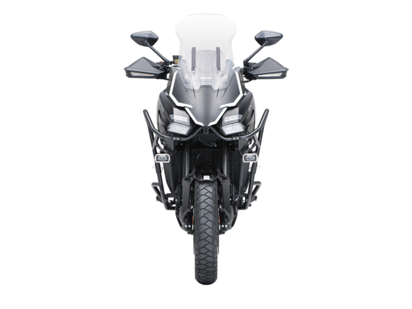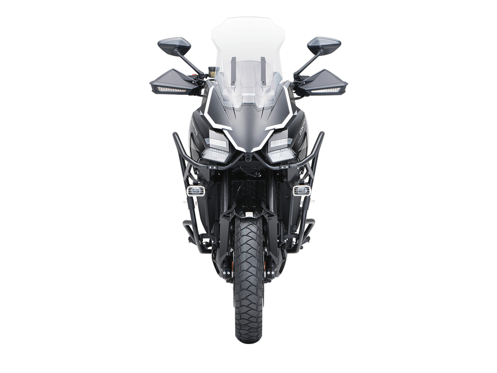 Мотоцикл ZONTES ZT703-F Tour 21/18 2025 – универсальный турэндуро, который подойдёт как для городских поездок, так и динамичных прохватов по грунту благодаря производительной подвеске. Узнайте, что такое настоящее наслаждение путешествием!Силовая установка представлена 3-цилиндровым 4-тактным двигателем объёмом 699 см³ с 4 клапанами на каждом цилиндре и 2 верхними распредвалами. Двигатель способен развивать мощность до 97,2 л.с. при 10 000 об/мин и высокий крутящий момент 76 Н·м при 7500 об/мин, что позволяет развивать большую скорость и с лёгкостью преодолевать трассы со сложным рельефом. Соотношение диаметра цилиндра и хода поршня 70х60,6 мм. Степень сжатия 13:1. Может работать в 2 режимах: ECO и SPORT. Запуск двигателя осуществляется с помощью бесключевого доступа. Установлена алюминиевая защита.Жидкостная система охлаждения эффективно поддерживает оптимальную температуру двигателя. На мотоцикл установлена 6-ступенчатая коробка передач, оснащённая квик-шифтером для переключения передач без использования рычага сцепления.В конструкции мотоцикла используется пространственная алюминиевая рама. Спереди и по бокам картера установлена металлическая защита двигателя. Выхлопная система оснащена стильным глушителем. Ёмкость топливного бака 22 литра.На мотоцикл установлены спицованные бескамерные колёса диаметром 19 дюймов спереди и 17 дюймов сзади. Подвеска изготовлена итальянским производителем MARZOCCHI. Спереди используется телескопическая вилка перевёрнутого типа с ходом 180 мм. Сзади установлен моноамортизатор с ходом 180 мм. Оба компонента регулируются.Дисковые гидравлические тормоза произведены компанией J.JUAN, входящей в холдинг BREMBO. Спереди используется двойной диск 310 мм с 4-поршневыми суппортами, а на заднем колесе расположен диск 260 мм с однопоршневым суппортом. Мотоцикл также оснащён 2-канальной ABS-системой с возможностью отключения, а также настраиваемой противобуксовочной системой.На мотоцикле используется яркая LED-оптика с дополнительным светом и многофункциональная приборная TFT-панель, положение которой можно регулировать. Рычаги тормоза и сцепления можно регулировать. Руль оснащён функцией подогрева и защитой рук. Спереди и сзади установлены видеорегистраторы. Мотоцикл оснащён датчиками давления в шинах. Ветровое стекло имеет электронную регулировку и настраивается через кнопки на руле. Имеется 2 USB-порта. Вещи можно перевозить в багажном отсеке, или присоединить кофры для перевозки: имеется площадка для установки центрального кофра и крепления для боковых кофров. Мотоцикл поставляется с центральной подножкой в комплекте.Габариты мотоцикла 2355x940x1395 мм. Колёсная база 1550 мм. Высота по седлу 830 мм. Вес 228 кг.Комплектация и внешний вид мотоцикла могут отличаться в зависимости от поставки. Изображение на сайте не гарантирует наличие тех или иных опций. Уточняйте информацию при оформлении заказа.
