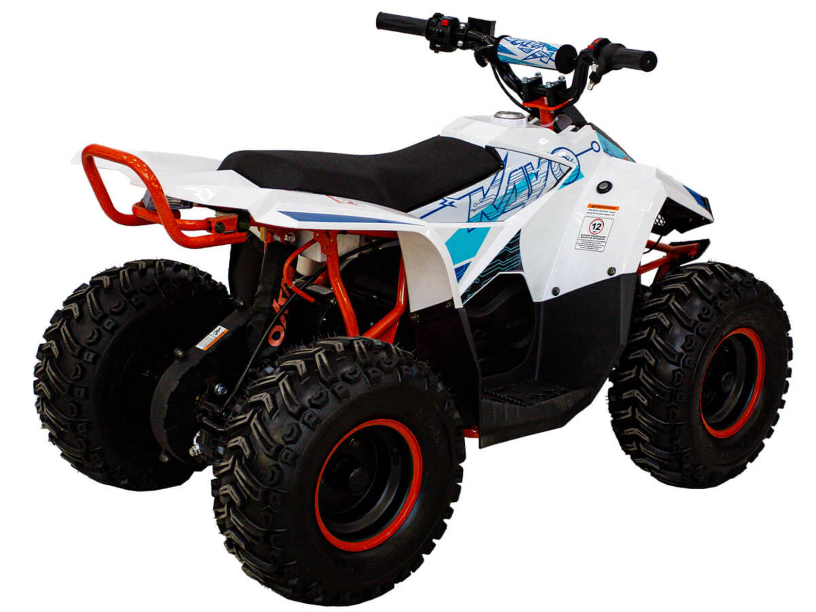 Квадроцикл KAYO EA70 – мощная внедорожная техника для весёлых и безопасных заездов на природе. Подходит для детей от 4 до 8 лет.Оснащён бесщёточным электродвигателем мощностью 500 Вт. Обеспечивает плавную и бесшумную езду без выхлопных газов. Свинцово-кислотный аккумулятор 48V20AH обеспечивает запас хода 50 км. Полная зарядка аккумулятора занимает около 8 часов. Трансмиссия представлена 3-ступенчатой коробкой с реверсом. Квадроцикл имеет систему плавного ускорения и торможения, что обеспечивает комфорт и безопасность во время заездов. Имеется регулируемый ограничитель максимальной скорости. Грузоподъёмность квадроцикла 50 кг.Диаметр колёс 7 дюймов. Подвеска спереди представлена нерегулируемым амортизатором длиной 250 мм, а сзади – регулируемым амортизатором длиной 235 мм. Сзади установлен гидравлические дисковые тормоза.Приборная панель представлена электронным дисплеем, куда выводится информация о скорости, заряде аккумулятора и километраже.Габариты квадроцикла 1250х780х820 мм, вес 93 кг.Внимание: поставляется в разобранном виде. Предназначен для самостоятельной сборки.