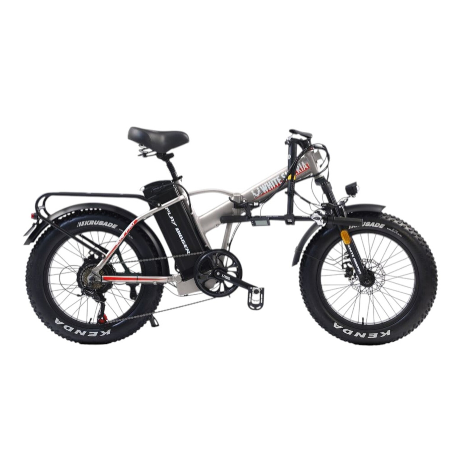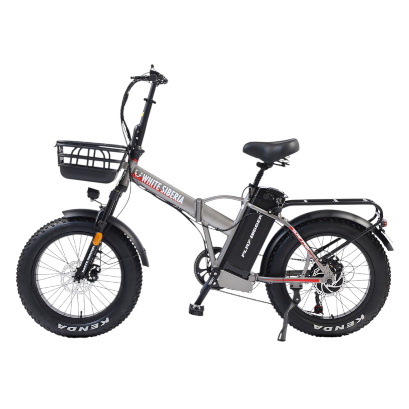 Электровелосипед WHITE SIBERIA SLAV PRO 1000WЭлектрический мини фет-байк - компактный и удобный маленький друг. С ним вы сможете комфортно передвигаться по городу, а в случае необходимости - сложить и уехать в пригород! Он создан для неспешных и комфортных велопрогулок по дорогам российских городов и пригорода!Чем же SLAV PRO так хорош?Мощный электромотор на 1000W отлично помогает на подъёмах в горку и экономит ваши силы во время дальних поездок! Он позволит вам взглянуть по-новому на покатушки - даёт насладиться дорогой и красотами города и парков!Усиленная рама из авиационного алюминия с легкосъёмной батареей на 48V 13A. Окрашена порошковой краской - надёжно защищена и красиво выглядит, благодаря 3 вариантам расцветки.Лёгкая, но прочная - велосипед в сборе весит всего 30 кг! Складная конструкция позволяет легко перевезти фет-байк в багажнике автомобиля или в общественном транспорте. Даже педали складываются! Так что во время хранения он занимает очень мало места.Колёса на 20 дюймов и шириной 4.0 - отличное соотношение манёвренности и проходимости! А благодаря резине Kenda с универсальным рисунком протектора - ещё и отличное сцепление с различными типами дорожных покрытий. Широкая резина лучше преодолевает различные препятствия - бордюры, корни деревьев, камни. В сочетании с регулируемой амортизационной вилкой - получается универсальный, устойчивый фет-байк.Металлические крылья на переднем и заднем колёсах полностью закрывают водителя от грязи, камней и брызг из-под колёс! Ведь широкая толстая резина с камерами даёт возможность ехать там, где другие идут пешком!Качественное навесное оборудование от фирмы SHIMANO, большой дисплей бортового компьютера с подсветкой, удобный лепесток газа, усиленный металлический багажник, передняя корзинка - всё это для вашего комфортного передвижения на мягком сидении электровелосипеда SLAV PRO 1000W.Дисковые механические тормоза спереди и сзади - просты и надёжны. А благодаря наличию подножке, ваш мини фет-байк может опереться и подождать, пока вы наслаждаетесь чашечкой ароматного кофе!Электровелосипед SLAV PRO - для ценителей компактных размеров, но огромных возможностей! Отдыхайте с удовольствием!