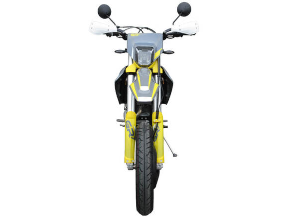 Мотоцикл GR7 F300A Motard 2024 – версия модели GR7 F300L, оснащённая ПТС и всем необходимым для использования на дорогах общего пользования. GR7 F300A Motard открывает больше возможностей для поездок и выбора маршрутов в гонках, а также отлично подходит для участия в классе супермото или исполнения трюков в стант-райдинге. Это отличный снаряд для внедорожного экстрима, обладающий оптимальным балансом мощности и надёжности.Обновлённая модификация 2024 года вобрала весь опыт инженеров компании прошлых лет и самые последние наработки GR. Мотоцикл стал более производительным, комфортным и привлекательным. Модель 2024 года собрана на новой раме, а пластик получил обновлённый яркий дизайн.GR7 F300A Motard оснащён одноцилиндровым 4-тактным двигателем ZONGSHEN PR300/ZS175FMM-5 с 2 клапанами и воздушным типом охлаждения. Двигатель имеет объём 287 см³ и обеспечивает мощность в 24 л.с., что позволяет быстро разгоняться и с лёгкостью преодолевать трассы со сложным рельефом. За подачу топлива отвечает карбюратор NIBBI PE30, который обеспечивает бесперебойную работу техники даже в самых жёстких условиях, прост в обслуживании и неприхотлив к качеству топлива. Механическая коробка передач имеет 6 ступеней и схему 1-N-2-3-4-5-6.Объём топливного бака 8 литров.На мотоцикл установлены спицованные колёса диаметром 17 дюймов, обутые в дорожную резину. Регулируемая подвеска SZC Optima спереди представлена телескопической вилкой перевёрнутого типа длиной 940 мм, а сзади – моноамортизатором длиной 480 мм. Оба компонента можно отрегулировать на сжатие и отбой. За торможение отвечают дисковые гидравлические тормоза с суппортами SZC. Диаметр переднего диска 260 мм, диаметр заднего диска 220 мм. Перья вилки и передний диск снабжены защитными кожухами.Мотоцикл оснащён защитой рук, зеркалами заднего вида и яркой фарой для поездок в тёмное время суток. Габариты 2200х920х1300 мм, колёсная база 1490 мм.