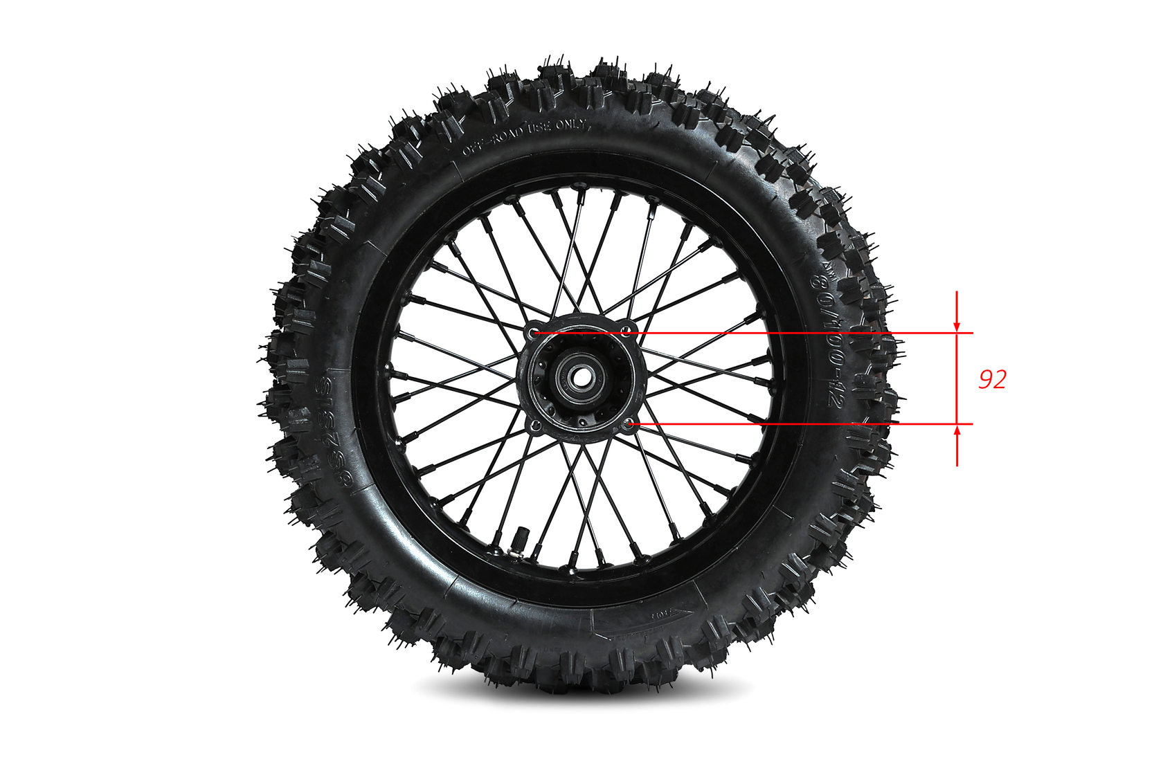 Готовое к установке заднее колесо R12 для большинства питбайков с алюминиевой ступицей под ось 15 мм. В комплекте надёжная покрышка Yuanxing 80/100-12. Колесо поставляется без звезды и тормозного диска, что позволяет использовать уже имеющиеся элементы с вашего мотоцикла или приобрести совместимые компоненты отдельно.