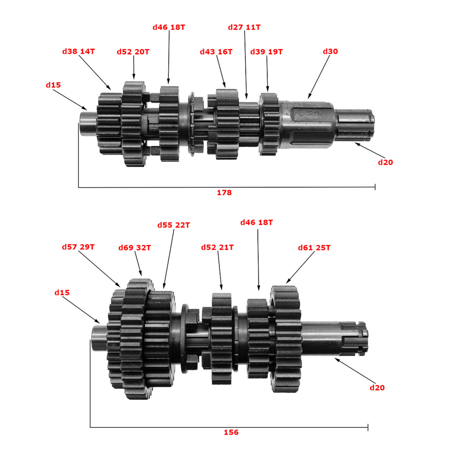 • Длина первичного вала: 178 мм