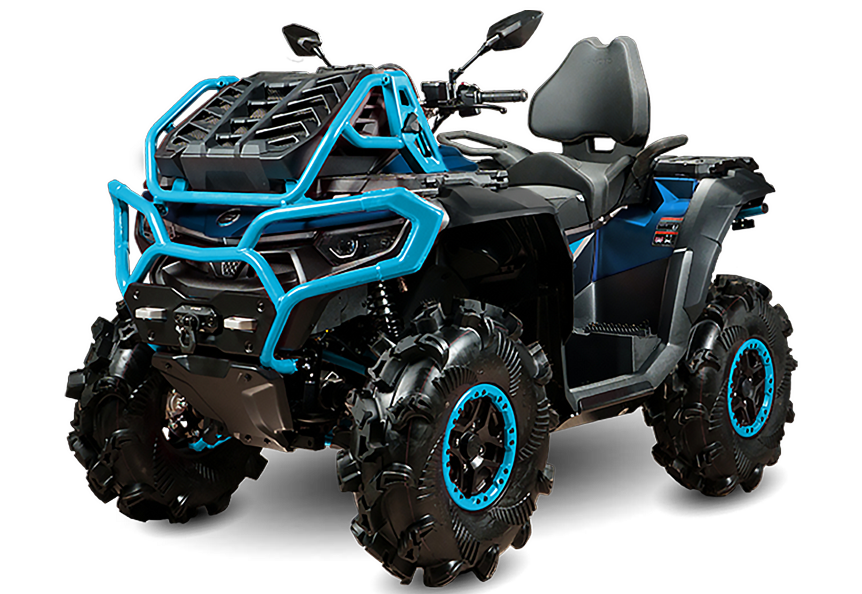 Комплектация 30-дюймовые грязевые шины CST SLUDGE HAMMER на 12” дисках с бедлоками; регулируемый вынос радиатора; шноркели; эксклюзивный вариатор CFMOTO; 8” MMI-дисплей с тачcкрином и офлайн-картами; усилитель рулевого управления (EPS) с 4 режимами работы; улучшенные амортизаторы с прогрессивными пружинами и регулировкой сжатия и отбоя; система помощи при спуске по склону (DAC)