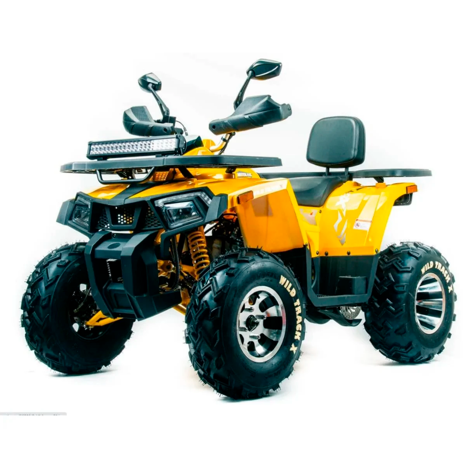 Квадроцикл MotoLand WILD TRACK X – сочетает в себе удобство, простоту обслуживания и хорошую проходимость в самых разных условиях использования. Благодаря отлично настроенной подвеске управление и передвижение на нем становится очень комфортным. Все неровности и кочки, будут проглатываться без проблем.Квадроцикл оснащен 161 QMK на 200 см3 двигателем c воздушно-масляным охлаждением и автоматической коробкой передач с реверсом, дисковыми тормозами, панелью приборов, ручным стартером. Он отлично подойдет для семейных покатушек, а также для рыбалки и охоты.В комплектацию входят фара, литые диски и подогрев ручек.