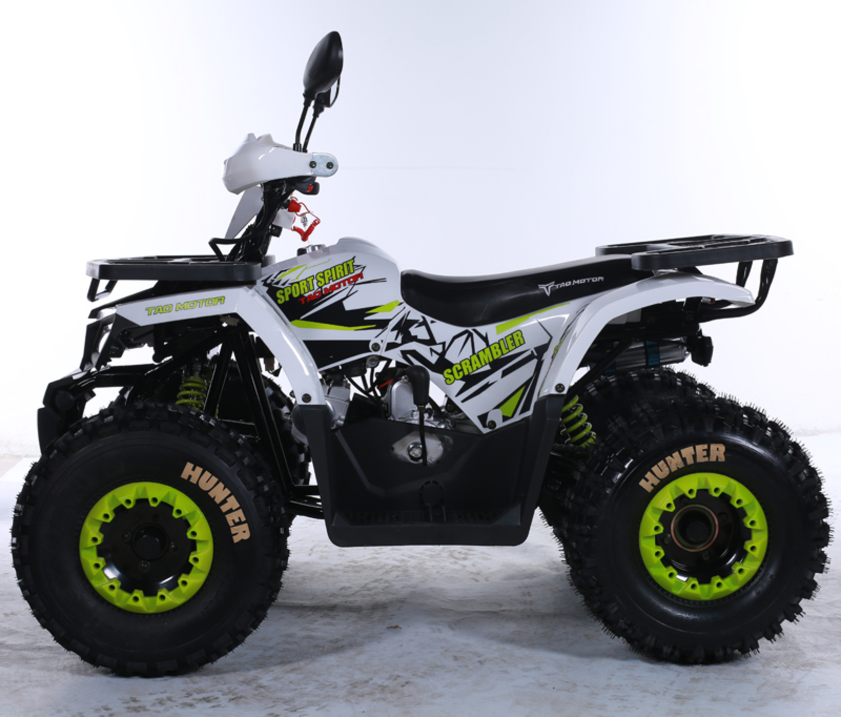 Квадроцикл TAO MOTOR HUNTER 125 - агрессивный и одновременно стильный квадроцикл без сомнения будет привлекать восхищенные и завистливые взгляды всех окружающих. Он способен развить скорость до 60 км/ч, что считается максимальной скоростью для данной модели. Предусмотрены багажники: передний и задний.Квадроцикл TAO MOTOR HUNTER 125 имеет уникальные амортизаторы, которые отличаются своей надежностью и обеспечивают удобную езду на представленном квадроцикле. Этот квадроцикл ориентирован исключительно на одного человека.
