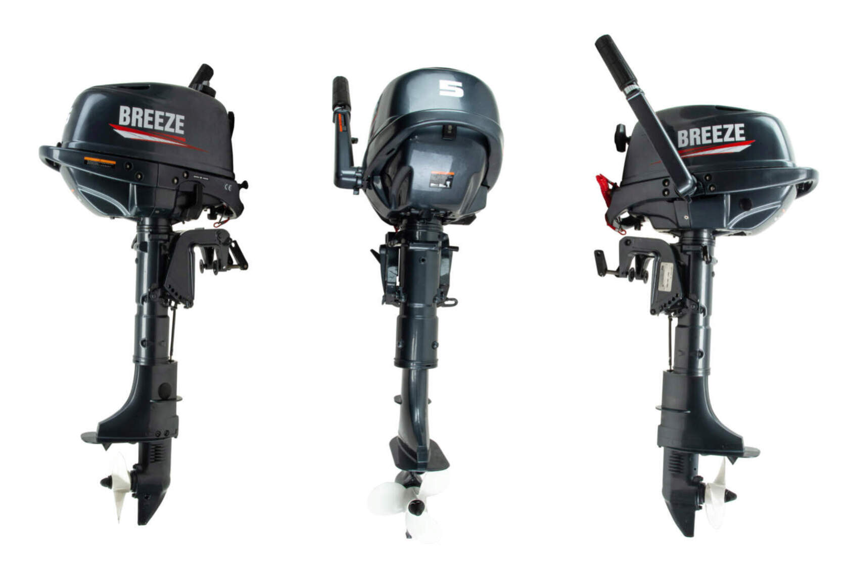 BREEZE F5S - четырехтактный лодочный мотор, мощностью 5 л.с., пользуется популярностью на протяжении несколько сезонов. Завоевал доверие покупателей своей надежностью и невысокой ценой.Мотор является качественным аналогом 5-ти сильного мотора от Yamaha. Обеспечивает уверенный ход на водоемах с течением и без. Имеет режим для передвижения по мелководью.Лодочный мотор имеет румпельное управление (ручка газа на румпеле). Направление движения можно зафиксировать поджимным болтом. Имеется груша подкачки топлива, это удобно в случае когда бензин закончился в баке и карбюраторе.Мощность (л.с./кВт): 5 / 3.67Количество цилиндров: 1Объем двигателя (куб. см): 139Диаметр цилиндра / Ход поршня (мм): 62 / 46Макс. число оборотов (об/мин): 4500 - 5500Система питания: карбюраторСистема запуска: ручнаяСистема зажигания: CDIСистема охлаждения: водяноеУправление: румпельПередачи редуктора: F-N-R (передний-нейтраль-задний)Передаточное отношение редуктора: 2,08 (13:27)
