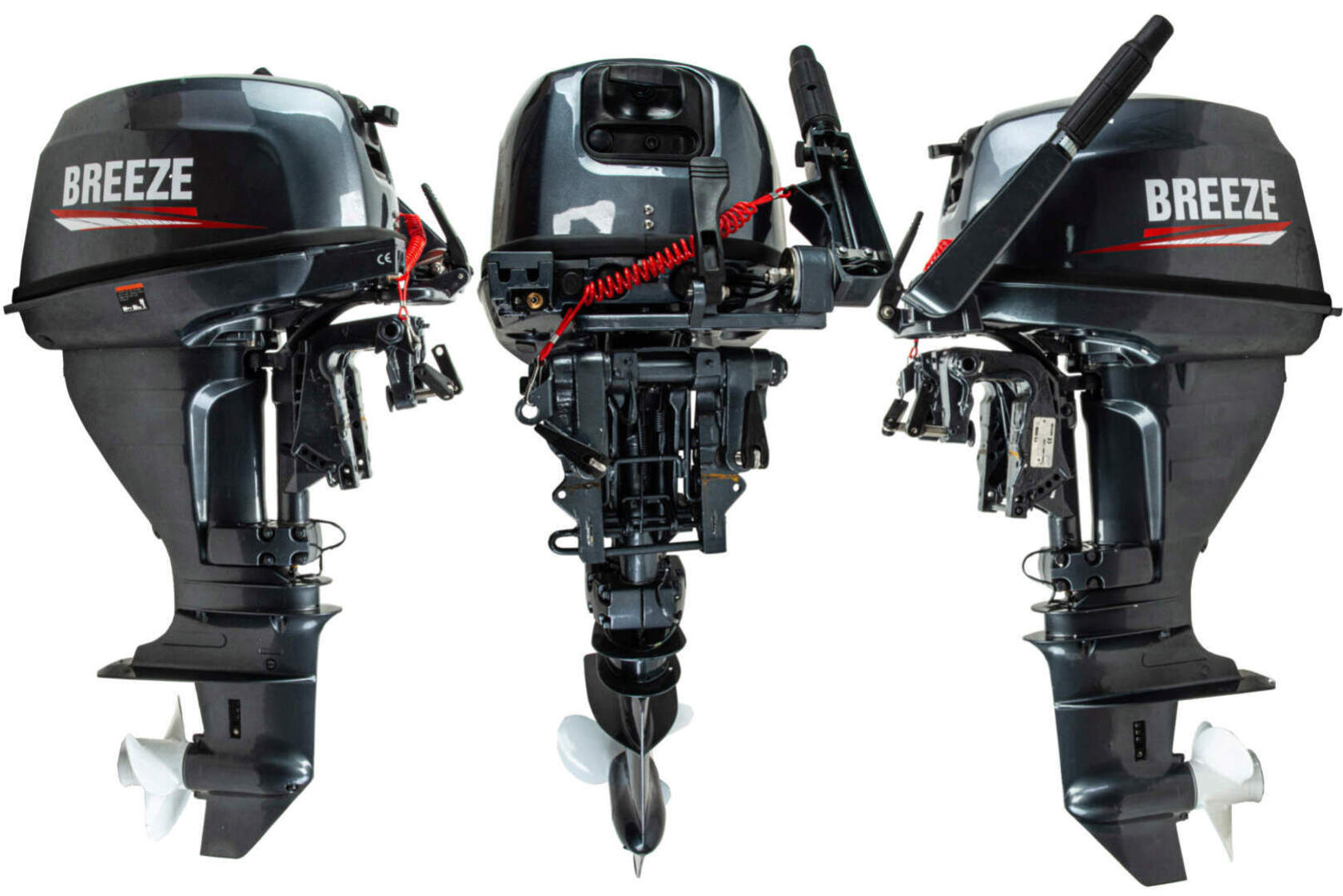 BREEZE F9,9S - это 4-х тактный 2-х цилиндровый лодочный мотор мощностью 9.9 л.с., позволяющий развивать скорость более 30 км/ч. Мотор является копией мотора Yamaha.Одно из основных преимуществ качественная сборка и низкий уровень шума. Обеспечивает уверенный ход на водоемах с течением и без. Имеет режим для передвижения по мелководью.Лодочный мотор с румпельным управлением. Ручка газа имеет три положения F-N-R(передний-нейтраль-задний). Запуск двигателя производится вручную шнуром.Имеется режим для передвижения по мелководью. Мотор комплектуется внешним 12 литровым баком.Мощность (л.с./кВт): 9,9 / 7,3Количество цилиндров: 2Объем двигателя (куб. см): 212Диаметр цилиндра / Ход поршня (мм): 56 / 43Макс. число оборотов (об/мин): 5000 - 6000Система питания: карбюраторСистема запуска: ручнаяСистема зажигания: CDIСистема охлаждения: водяноеУправление: румпельПередачи редуктора: F-N-R (передний-нейтраль-задний)Передаточное отношение редуктора: 2,08 (13:27)
