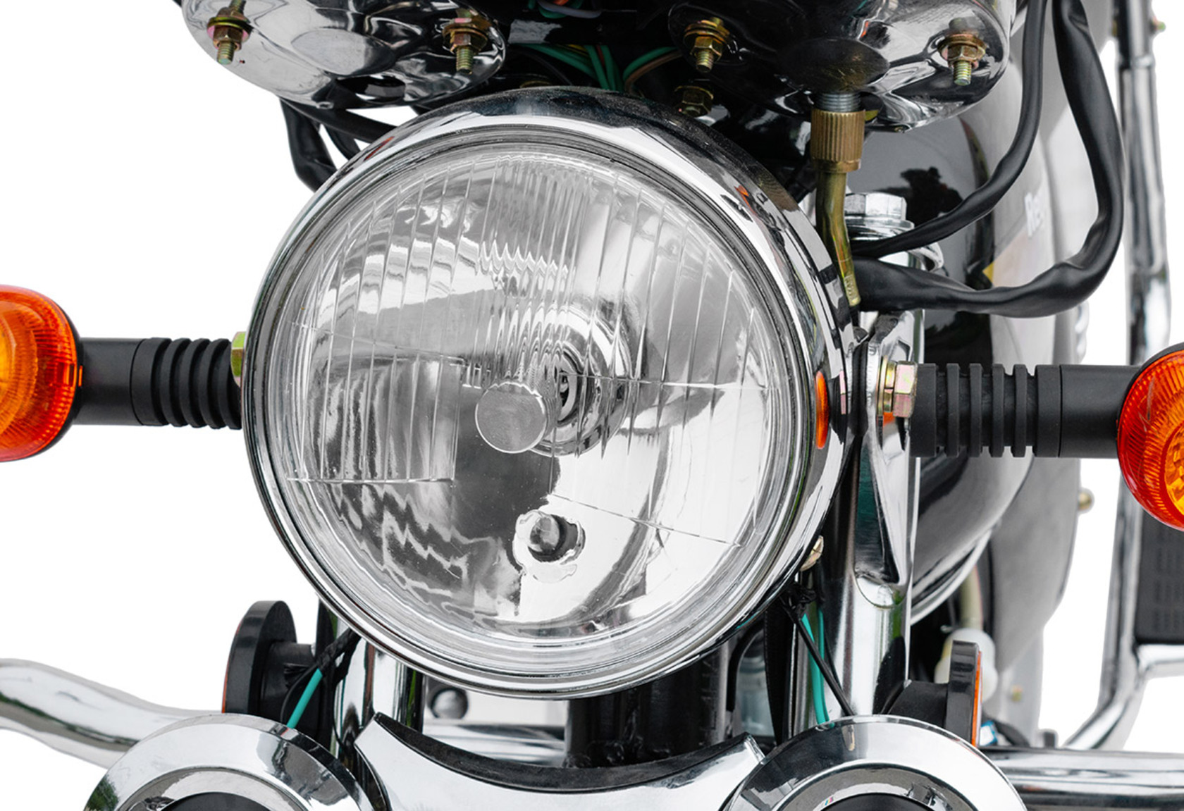 Электрика Светодиодная фара, электростартер, замок зажигания, АКБ(12В, 4Ач), полный комплект светотехники, аналоговая приборная панель.