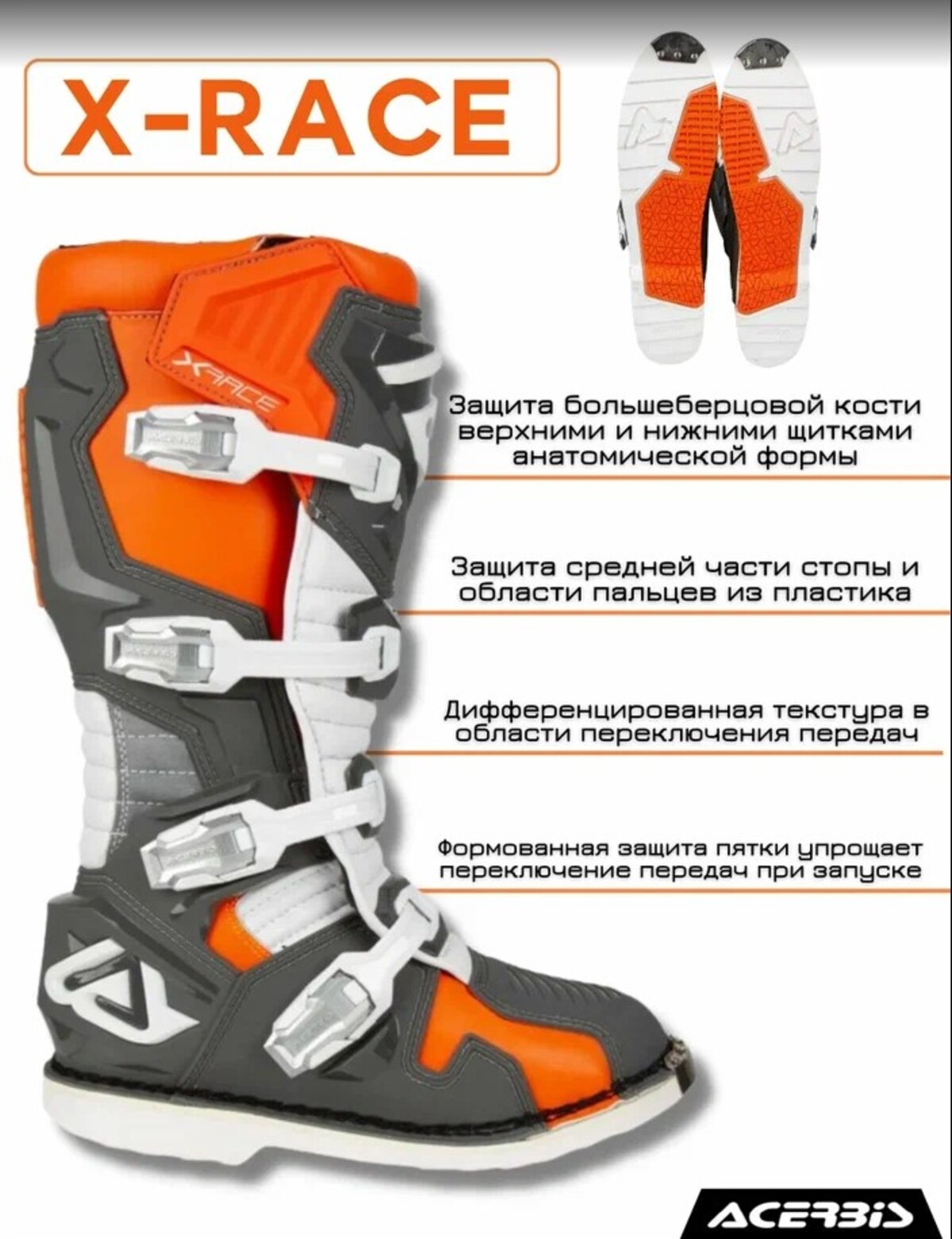 Главная ... Мотоботы Acerbis Мотоботы кроссовые Acerbis X-RACE Orange/Grey, (р.41)