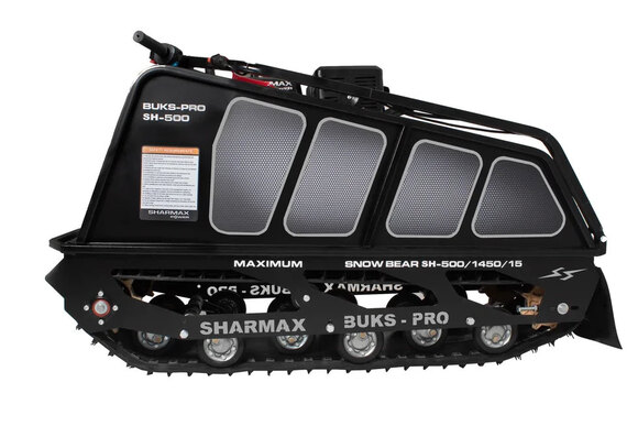 Мотобуксировщик SNOWBEAR SE500 1450 HP18 MAXIMUM настоящий помощник на охоте и рыбалке, решит множество задач в сельскохозяйственной деятельности. Идеальное сочетание цены и качества.Гусеница мотобуксировщиков “Sharmax” шириной 500 мм является надежной и универсальной. Обладает повышенной стойкостью к износу, а специальная форма протектора дает отличное сцепление с поверхностью, при этом сохраняя уверенную маневренность мотобуксировщика..