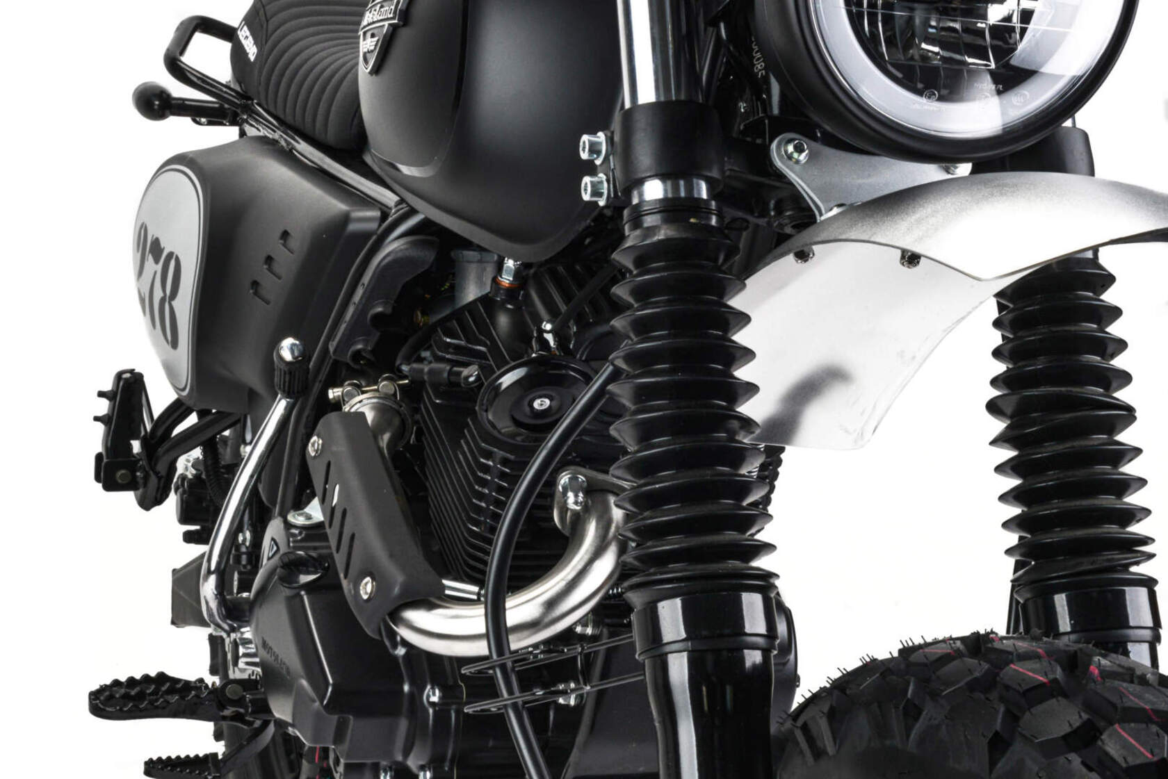 Комплектация Защита картера, Защита рук, алюминиевые крылья и защита цепи, усиленный толстостенный руль и усиленная 520 цепь.