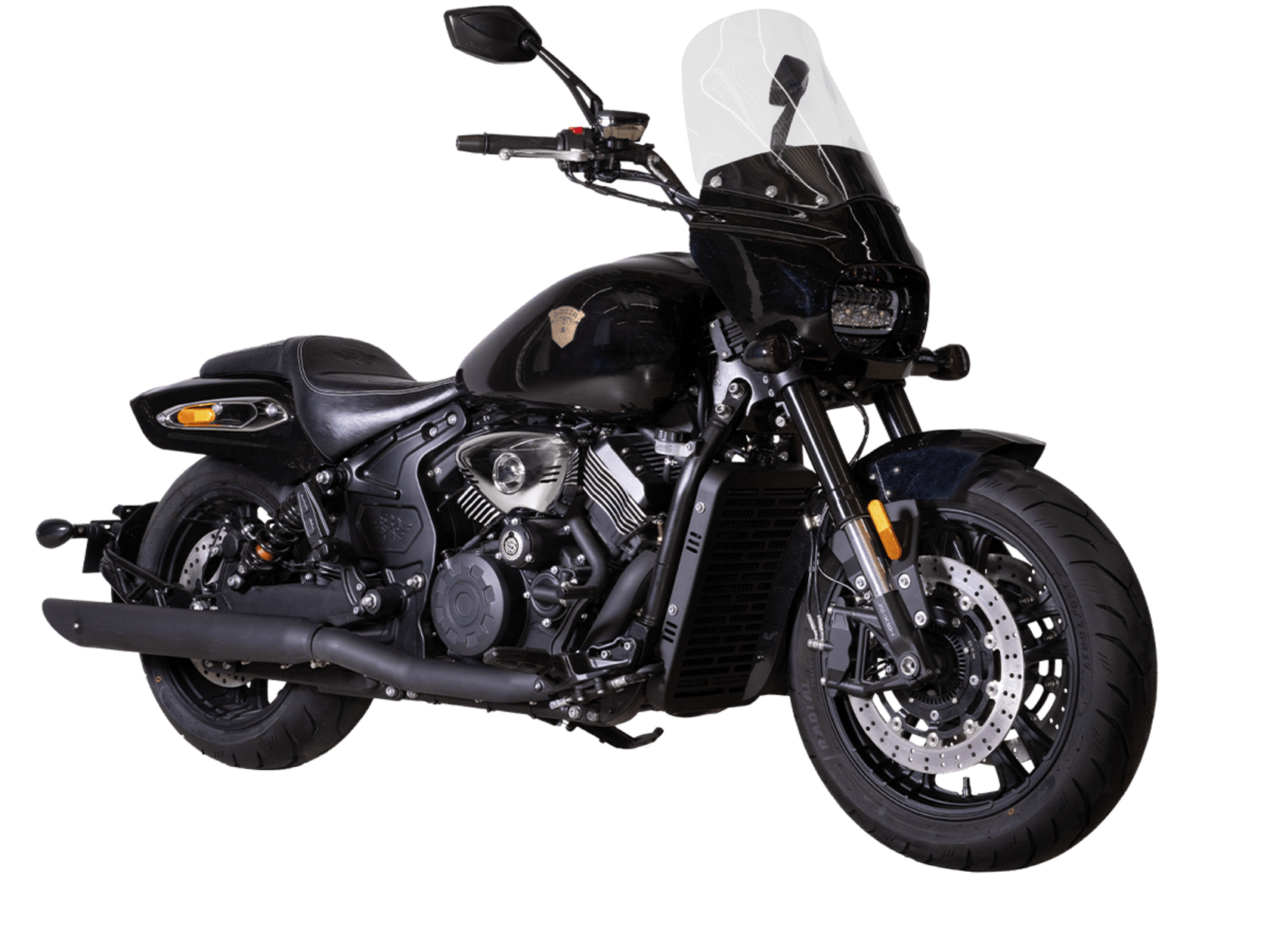 GROZA RL800 – шикарный круизёр, который подойдёт как для повседневной городской езды, так и для комфортного перемещения на длинные дистанции. Его дизайн исполнен в классическом стиле, соответствующем всем канонам данного типа мотоциклов.Двухцилиндровый V-образный двигатель объёмом 800 см3 мощностью 61 л.с. при высоких показателях динамики и отличном крутящем моменте способен разгонять аппарат до 160 км/ч. Инжекторный впрыск топлива с инжектором DELPHI увеличивает топливную экономичность, а также позволяет добиться высокой приёмистости и неприхотливости агрегата. Привод на ведущее колесо осуществляется ремнём знаменитой марки USA Gates. Жидкостная система охлаждения не допустит перегрева мотора даже при самом агрессивном вождении.RL800 имеет 6-ступенчатую механическую коробку передач с классической схемой “1-N-2-3-4-5-6”. На мотоцикл установлены литые алюминиевые диски диаметром 17 дюймов. Ширина передней покрышки – 140 мм, задней – 200 мм. С неровностями дороги эффективно справляются телескопическая вилка перевёрнутого типа спереди и маятник с двумя газонаполненными амортизаторами сзади. Подвеска имеет 7 ступеней регулировки, что обеспечивает лёгкую перестройку на различные режимы езды. Для всего класса круизёров такая опция – большая редкость. Эффективное и безопасное замедление с любых скоростей обеспечивают гидравлические дисковые тормоза спереди и сзади от компании NISSIN.Аппарат оснащён своеобразной и очень привлекательной по дизайну светодиодной оптикой, а также бортовым компьютером и ярким и информативным дисплеем.Мотоцикл сочетает в себе отличные технические характеристики, богатое оснащение, комфорт и надёжность, что позволяет вам ощутить настоящую свободу на любой дороге.