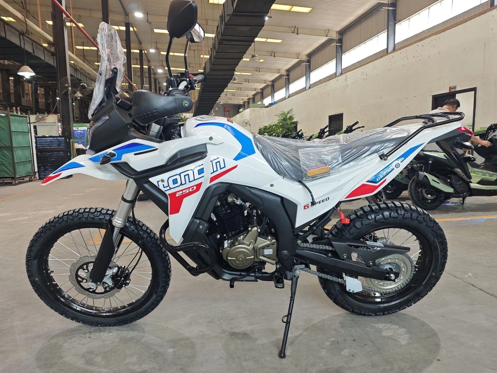 Loncin DS 250 - туристический эндуро.Создан на базе раллийного мотоцикла VOGE 300Rally. Современная жёсткая диагональная рама позволяет стабильно управлять мотоциклом на бездорожье, а продвинутая диодная оптика и ветрозащита – комфортно передвигаться по трассе. Это серьёзная и сбалансированная туристическая техника для мотопутешествий по любым дорогам. Надёжный новый двигатель собственной разработки Loncin, презентованный в 2023 году: 4х-клапанный, на воздушно-масляном охлаждении, с балансиром-эксцентриком и 6-ступенчатой коробкой передач.Каждый из этих мотоциклов полностью отвечает своему предназначению – быть верным и надёжным компаньоном для решения поставленных задач. Для энергичных и рациональных людей, которые ценят время, комфорт, экономичность.Все три модели отлично подходят для новичков – открывая двери в разные классы мотоциклов. Один из этих мотоциклов подойдёт и тому, кто всегда стремится выбирать неприхотливость, надёжность и комфорт за лучший ценник.Спецификация мотоцикла Loncin DS250 Rally:– Модель: Loncin DS 250 Rally