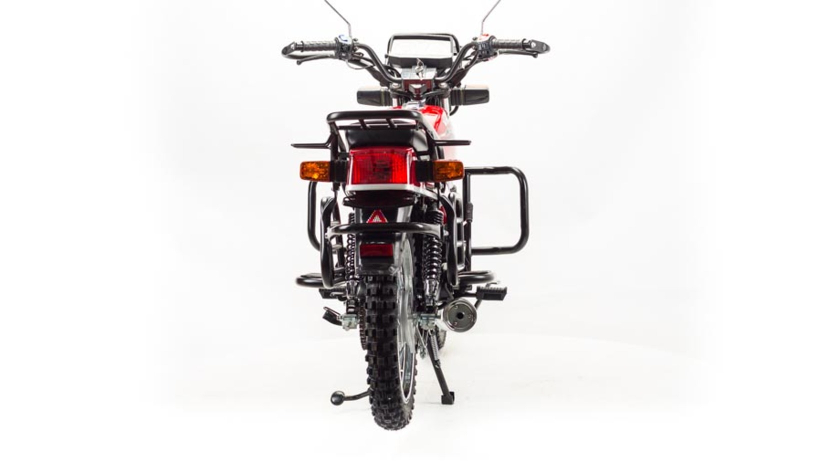 Форестер 200 доступен в красном, черном и зеленом цвете и отличается классическим функциональным дизайном. Оснащён фарой дальнего и ближнего света, светоотражателями, большим стоп-сигналом. Это настоящая рабочая лошадка с хорошим запасом прочности для тяжёлой каждодневной работы.Диаметр колёс — 18 дюймов. Покрышки с крупными шипами позволяют преодолевать препятствия, уверенно ездить по бездорожью. Большой металлический бак даёт возможность ездить на большие расстояния, не беспокоясь о наличии заправок. Мотоцикл оснащён спидометром с электронным датчиком переключения передач, тахометром. Передние и задние тормоза барабанные, легко регулируются, при необходимости их можно подтянуть даже в полевых условиях.Задняя подвеска включает 2 надёжных амортизатора. Руль обычного сечения с низким подъёмом защищён специальной металлической дугой от повреждений при падении мотоцикла. Также на руле расположен подсос, что позволяет заводить Мотолэнд Форестер, не вставая с сиденья. Мотоцикл Форестер 200 оснащён карбюратором и одноцилиндровым четырёхтактным двигателем 200 см³ с большим ресурсом и тихой работой за счет балансированного вала. Механическая трансмиссия содержит 5 передач. Для запуска двигателя можно использовать электростартер и кикстартер. Мотоцикл Мотолэнд Форестер как многофункциональный трансформер при необходимости позволяет легко увеличить площадь полезной нагрузки. На руле размещён багажник с держателем груза. Также большой багажник есть в задней части мотоцикла, а над подножками встроены специальные увеличители площади для перевозки грузов. Вместительность, неприхотливость в обслуживании, работоспособность — всё это мотоцикл Форестер.