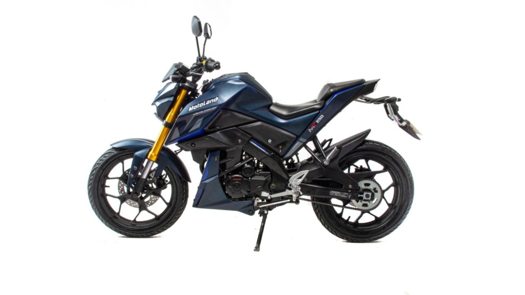 Мотоцикл Motoland MT250 новинка 2022 годаНовый мотоцикл на двигателе 172FMM-5 c 5ю скоростями, масляным радиатором, кикстартером и электростартером, мощность двигателя 21 Л.С. На двигателе установлен Карбюратор Keihen PZ 30.Двух поршневые передние суппорта, литые алюминиевые колёса, передняя вилка перевёрнутого типа, с увеличенным ходом, обеспечивает комфорт и прекрасную управляемость при езде по городским дорогам.Современный дизайн, удобное кожаное сиденье и жидкокристаллический дисплей с подсветкой - заставят радоваться покупке.Световое оборудование на экономичных и долговечных светодиодах.110/70-17 130/70-17 колёса и 428я цепь.Рама дублексная. Задняя часть усиленная, профилированная.