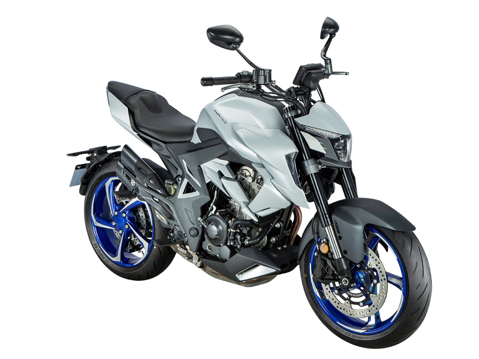 Мотоцикл ZONTES ZT350-R1 – современный нейкед со стремительным и дерзким дизайном. Хорошо подходит как для поездок в городской среде и маневрирования в межрядье.Силовая установка представлена одноцилиндровым 4-тактным двигателем ZT184MP с 4 клапанами и 2 верхними распредвалами. Двигатель имеет объём 348 см³ и обеспечивает мощность в 39 л.с. Оснащён инжектором BOSCH и системой жидкостного охлаждения. Механическая коробка передач имеет 6 ступеней и схему 1-N-2-3-4-5-6. Запуск двигателя осуществляется с помощью бесключевого доступа.Ёмкость топливного бака 15 литров.Колёса представлены литыми алюминиевыми дисками диаметром 17 дюймов. На мотоцикл установлены датчики давления в шинах, показатели от которых выводятся на приборную панель. Для подвески спереди используется телескопическая вилка, сзади – моноамортизатор. Гидравлические дисковые тормоза произведены испанской компанией J.JUAN, входящей в холдинг BREMBO.Для освещения используется яркая LED-оптика, а приборная панель представлена цифровым дисплеем. Рычаги тормоза, сцепления и лапки КПП можно отрегулировать. Имеется 2 USB-порта.Габариты мотоцикла 2030х795х1120 мм. Колёсная база 1390 мм. Высота по седлу 795 мм. Вес 165 кг.