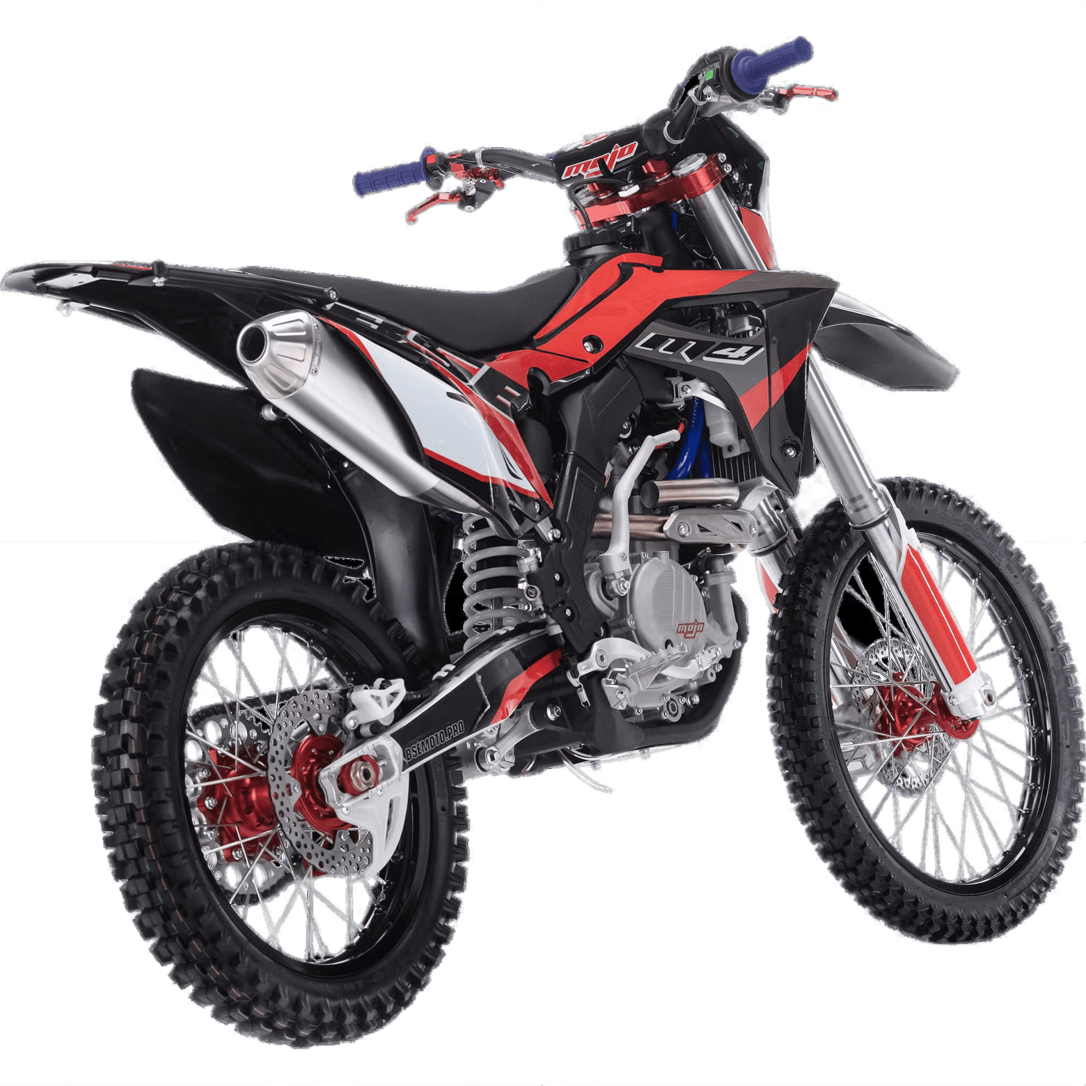 Сердце M4 – мощный, эластичный и надежный 250 кубовый Zongshen ZS 177 FMM мощностью 27 лс с водяным охлаждением. Отличные показатели крутящего момента во всем диапазоне оборотов. Система подачи топлива – спортивный карбюратор NIBBI RACING 34. На мотоцикле установлена спортивная выхлопная алюминиевая система увеличенного диаметра. Имеется вентилятор охлаждения. Коробка передач - 6 ступенчатая механическая. Рама M4 - оригинальная, многосоставная, алюминиевая и невероятно крепкая. Рама запатентованной заводом Bosuer. M4 уже в заводской комплектации готов к покорению серьезного бездорожья и участия в соревнованиях. Подвеска MOJO c большими ходами имеет полный диапазон регулировок и помогает отрабатывать даже самые жесткие приземления, с лёгкостью "проглатывает" все неровности. Установлена вилка “перевертыш” Mojo Racing c “толстыми” перьями диаметром 57 мм с двумя картриджами. Идеальная развесовка и сбалансированность конструкции мотоцикла даёт преимущество при прохождении острых поворотов и подъёмов. На мотоцикле установлено все необходимое для оффроуда: литые рычаги задней прогрессии, алюминиевый маятник, прочный задний бугель, “злая” внедорожная резина. А также: усиленные легкосплавные колёсные диски MOJO, усиленная цепь, защита рук, датчик моточасов, прочные алюминиевые облегченные ступицы MOJO, складные СNC рычаги тормоза и сцепления, колесные подшипники NTN, защита коллектора, картера двигателя и тормозных дисков. Мощная гидравлическая тормозная система HSК Racing с тормозными дисками с увеличенной вентиляцией остановит байк в любых условиях. На BSE M4 также можно с комфортном отправиться в продолжительное путешествие благодаря удобному сиденью, широкому спортивному рулю MOJO, наличию электростартера и топливному баку на 6.5 литра. C яркой LED фарой головного света можно кататься в ночное время. Хочется также отметить современный дизайн мотоцикла. Идеально сбалансированный, устойчивый, крепкий мотоцикл. Ставший уже классикой в мире мотокросса и эндуро среди китайских производителей. Ваши возможности на бездорожье безграничны! Будь то кроссовый трек, соревнования по хард эндуро, либо серьезная покатушка по бездорожью