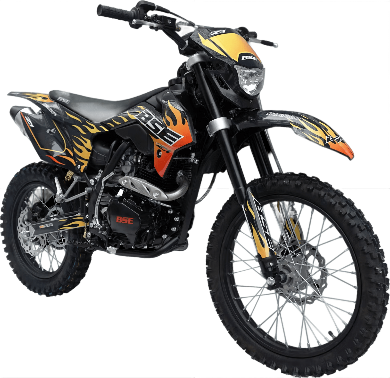 Кроссовый мотоцикл BSE Z1 19/16 удачный, сбалансированный и технологичный мотоцикл для начинающих. Компактный, лёгкий, надёжный, простой в управлении мотоцикл с ярким дизайном.Z1 оснащен мощным, но в тоже время послушным и отзывчивым мотором Zongshen 150 куб см с вертикальным расположением цилиндра, надежным карбюратором Nibbi и 5-ступенчатой механической трансмиссией. Запатентованная прочная стальная рама BSE, увеличенная колёсная база, вилка “перевертыш”, мощная тормозная система HSK Racing, внедорожная резина Yuanxing, колёса размером 19/16 позволят спокойно преодолевать легкий и средний уровень оффроуда. Препятствия, броды брёвна – Z1 все под силу.BSE Z1 отлично подходит для лёгких мотопрогулок по пересечённой местности с пассажиром благодаря удобному сиденью, подножкам заднего пассажира и невысокой высоте мотоцикла.