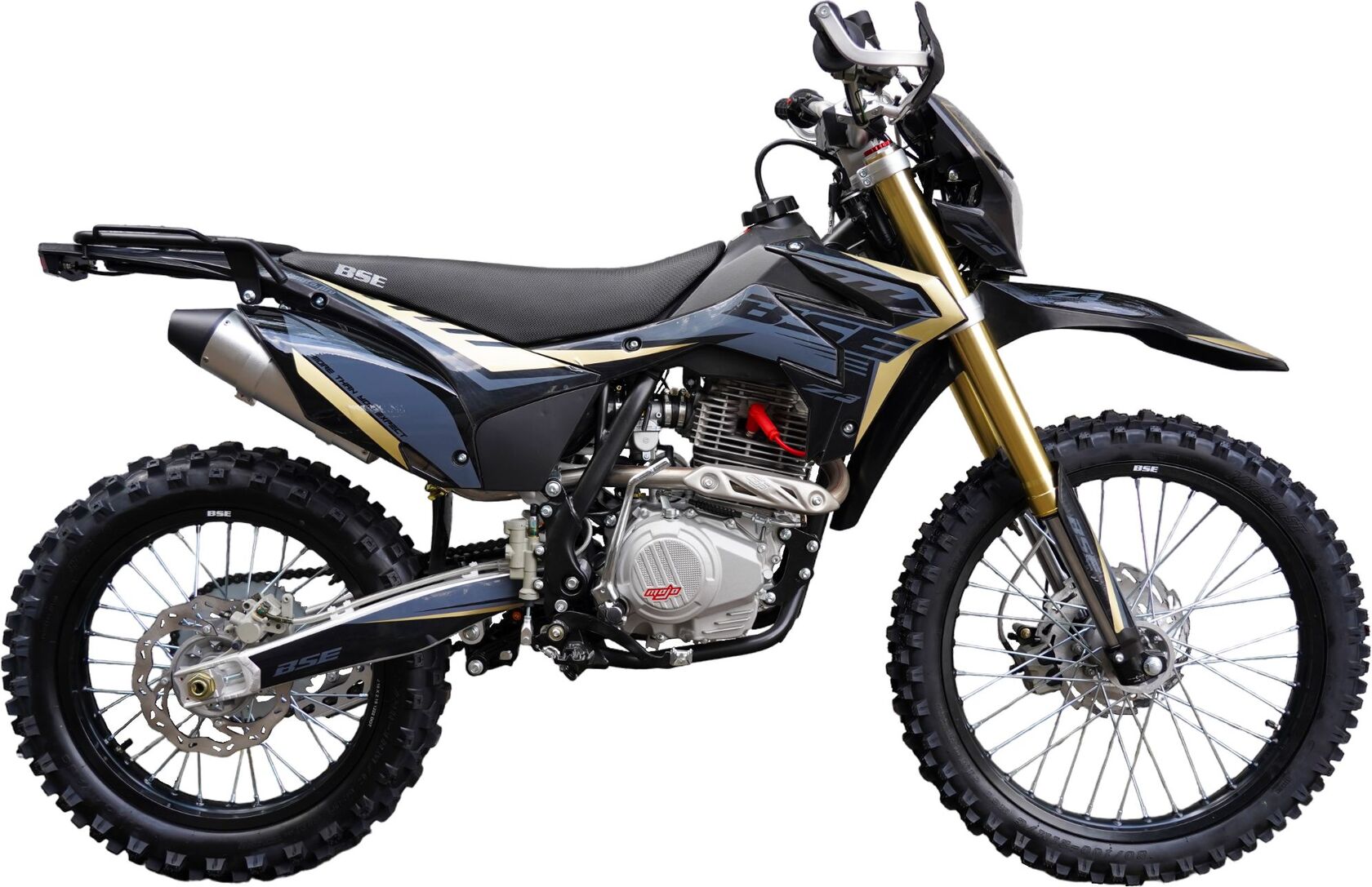 Среднеразмерный эндуро BSE Z3 с мощным мотором Zongshen 250сс, прочной рамой и регулируемыми подвесками готов на любые приключения! Компактный, с минимальным весом и фантастической управляемостью - отличный выбор для райдеров среднего уровня. Чрезвычайно удачный, сбалансированный и комфортный мотоцикл. Современный яркий дизайн пластика. Надежный и тяговитый 4-х тактный Zongshen ZS 172 FMM объёмом 250сс, контролируемая подача мощности благодаря карбюратору Nibbi, отличный отклик дроссельной заслонки на короткоходную ручку газа. Мощная гидравлическая тормозная система HSK RACING остановит ваш мотоцикл максимально эффективно. Прогрессия задней подвески, регулируемая энергоемкая подвеска, вилка “перевертыш”, стальная рама повышенной жёсткости с усилителями, буксаторы на усиленных ободах, 520 цепь, внедорожная резина – BSE Z3 не спасует в условиях серьезного бездорожья. Комфорт. Его на BSE Z3 в избытке: LED фара головного света, электростартер, удобное сиденье, широкий спортивный алюминиевый руль, защита рук. Благодаря ЖК приборной панели вы всегда будете знать о всех главных параметрах мотоцикла. Возможность закрепить поклажу на задний багажник.