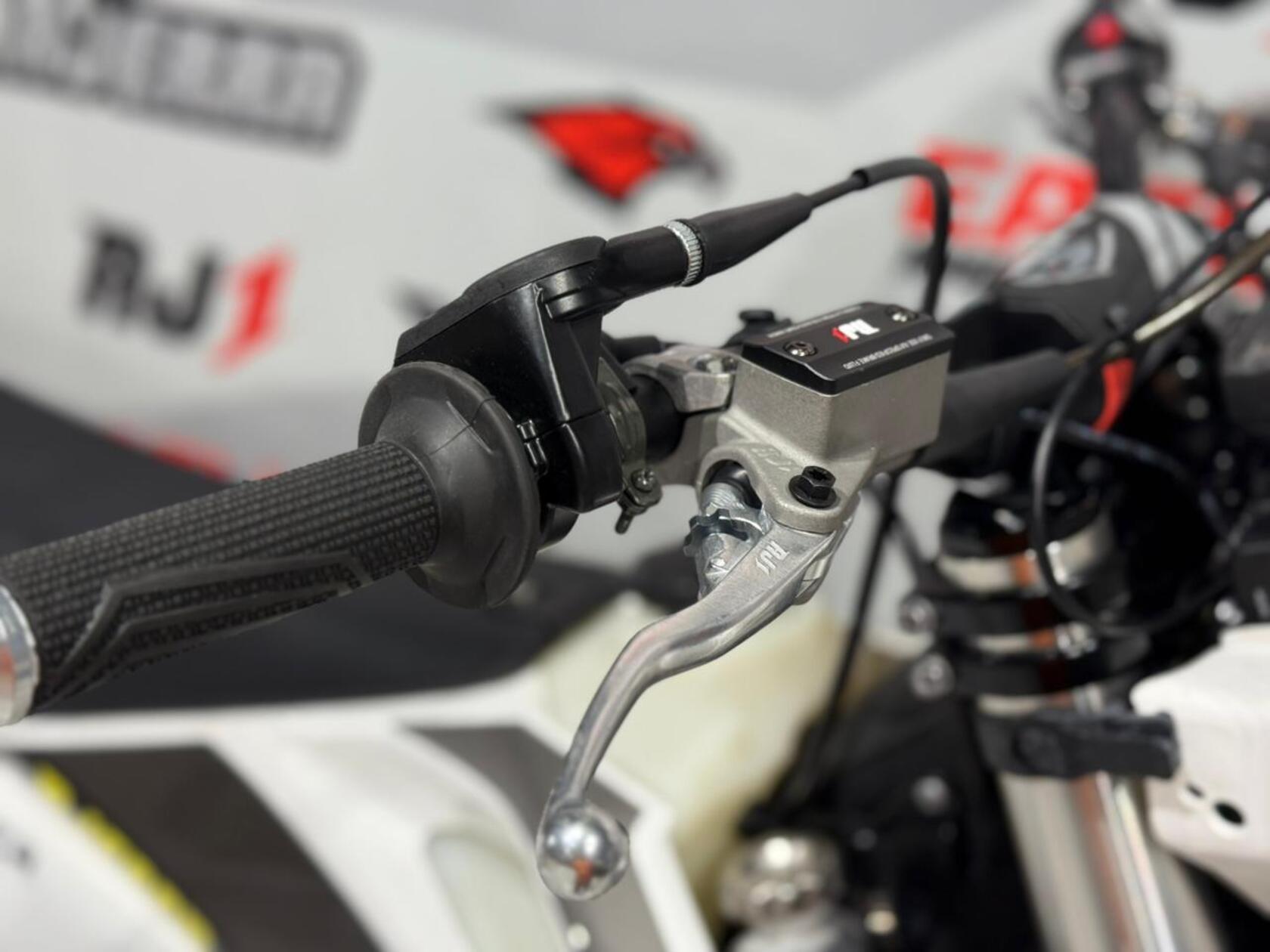 Мотоцикл AJERRA JOKER C10 YBS 300 — это воплощение современного эндуро с безупречным балансом мощности, управляемости и технологичности. Он создан на базе проверенного двигателя Loncin YBS300 176FM с водяным охлаждением, который обеспечивает стабильную работу, отличную тягу и плавную реакцию на газ. Надёжный мотор и карбюратор Nibbi Racing PWK 34 Black формируют сбалансированную связку, обеспечивающую уверенное ускорение и высокую производительность в любых условиях. Конструкция мотоцикла построена на прочной и лёгкой раме К10 завода AJ1 — это точная копия KTM 2024 года, что гарантирует устойчивость и отличную управляемость даже на сложных участках трассы. Внешне модель выполнена в стиле Husqvarna 2024 года: динамичный пластик придаёт мотоциклу агрессивный спортивный облик, а продуманные формы обеспечивают удобство посадки и контроль над техникой. Подвеска у JOKER C10 на высшем уровне: спереди установлена вилка HTW SCC длиной 930 мм с одним картриджем, а сзади — амортизатор HTW 2450 с прогрессией, обеспечивающий мягкость и точную работу при высоких нагрузках. Алюминиевый маятник, фрезерованные траверсы AJ1 2024 и усиленные обода UNISON 7116 создают прочную, но лёгкую конструкцию, идеально подходящую для скоростного эндуро. Мотоцикл оснащён тормозной системой AJ1 с дисковыми тормозами спереди и сзади, обеспечивающими надёжное торможение в любых условиях. Усиленный руль AL7075, фрезерованные ступицы и алюминиевая ведомая звезда AL7075 51 делают управление максимально точным и уверенным. Выхлопная система AJ1 2025 обеспечивает не только приятный звук, но и стабильную работу двигателя на высоких оборотах. Электрооборудование продумано до мелочей: мощный свет 2 EYE LED Generation 4 (50W), литиевый аккумулятор Skyrich, приборная панель в стиле KTM 2024, счётчик моточасов, защита рамы и мотора, передние и задние стропы, а также анатомическое антискользящее сиденье AntiSkid. Каждая деталь создана для удобства и надёжности. Покрышки AJ1 размером 80/100-21 спереди и 120/90-18 сзади обеспечивают уверенное сцепление с дорогой, а цепь KMC 520 Pro выдерживает высокие нагрузки при активной езде. Все болты формата TorX повышают надёжность и упрощают обслуживание. С высотой по седлу 94 см, мотоцикл AJERRA JOKER C10 YBS 300 ориентирован на опытных райдеров, ищущих надёжную и технологичную технику для эндуро и кросса. Эта модель сочетает в себе премиальные комплектующие, высокое качество сборки и выдающиеся характеристики, делая езду комфортной, управляемой и по-настоящему захватывающей..