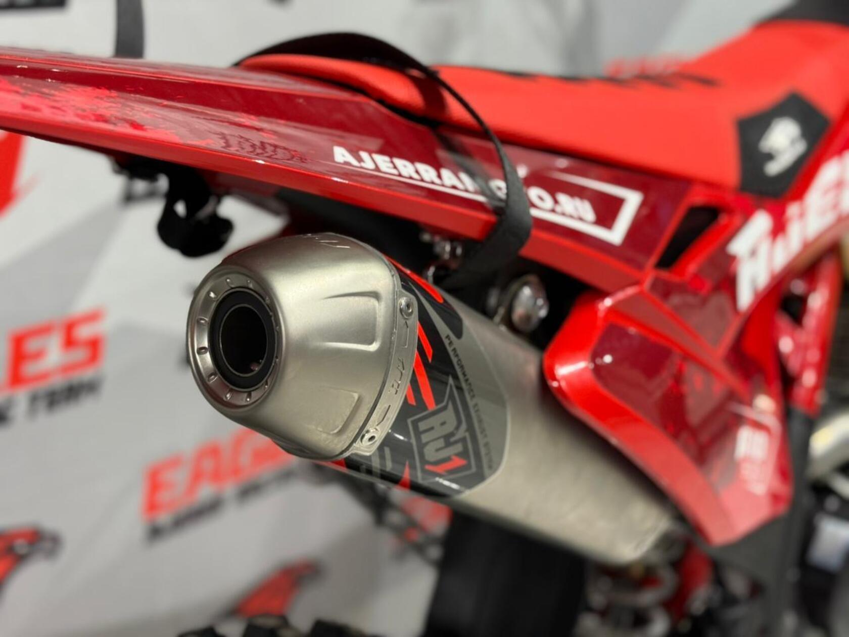Мотоцикл AJERRA SAGAI A10 YB300H — это современный эндуро-байк, сочетающий в себе надёжность, мощь и управляемость, созданный специально для тех, кто ценит уверенность на трассе и бездорожье. Построенный на прочной раме AJ1 К10 — копии легендарного KTM 2024 года, он демонстрирует высочайший уровень прочности и устойчивости при активных нагрузках. В сердце мотоцикла установлен проверенный временем двигатель Loncin YB300H 176 FMN с воздушным охлаждением. Мотор отличается стабильной тягой, простотой обслуживания и долговечностью, что делает его идеальным выбором как для тренировок, так и для любителей активных покатушек по пересечённой местности. В паре с надёжным карбюратором Nibbi Racing PWK 34 Black он обеспечивает точную подачу топлива и отзывчивость на газ. Подвеска здесь не уступает по качеству — передняя вилка HTW SCC 930 мм с одним картриджем и задний амортизатор HTW 2450 с прогрессией эффективно отрабатывают кочки и препятствия, обеспечивая максимальный комфорт и контроль в движении. Фрезерованные траверсы AJ1 2024 и алюминиевый маятник добавляют лёгкости и прочности конструкции, а система тормозов AJ1 с дисками на обеих осях гарантирует стабильное торможение даже в экстремальных условиях. Детали выполнены с вниманием к каждой мелочи: усиленный руль AL7075, алюминиевые подножки AJ1 2024 (копия S3), надёжная цепь KMC 520 Pro, эргономичные грипсы Lock ON и ручка газа Nibbi. Светодиодная оптика 2 EYE LED Generation 4 (50W) обеспечивает отличную видимость даже ночью. Алюминиевые обода UNISON 7116 и фрезерованные ступицы придают мотоциклу дополнительную прочность, а внедорожные покрышки Cordinal 80/100-21 и 120/90-18 обеспечивают уверенное сцепление с любой поверхностью. Комфорт и надёжность дополнены практичными элементами: счётчик моточасов, защита мотора и рамы, стропы для фиксации, заглушки руля и сиденье AntiSkid. Вся электрика работает от аккумулятора Skyrich Li-Ion, что гарантирует стабильный запуск и работу систем. Высота по седлу — 940 мм, что делает мотоцикл удобным для райдеров среднего и высокого роста. AJERRA SAGAI A10 YB300H — это мощный и сбалансированный эндуро-мотоцикл для тех, кто ищет универсальность и готовность к любым условиям. Он подойдёт как для тренировок и участия в любительских соревнованиях, так и для активного отдыха..