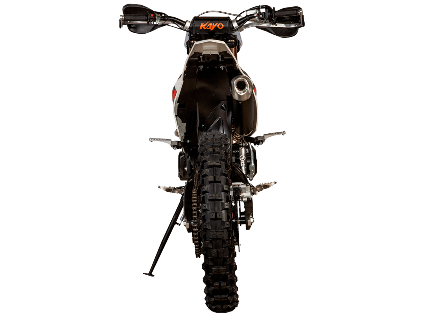 Мотоцикл KAYO K3 300 MX 21/18 2025 – эндуро мотоцикл, который пришёл, чтобы стать новым хитом среди среднеразмерных моделей!Мотоцикл оснащён одноцилиндровым 4-тактным двигателем ZONGSHEN PR300/ZS175FMM-5 объёмом 271,3 см³ с балансирным валом и воздушным типом охлаждения. Максимальная мощность в 21,75 л.с. достигается при 8500 об/мин, а максимальный крутящий момент 22 Нм при 6500 об/мин. Соотношение диаметра и хода поршня 75,0х61,4. Степень сжатия 9,29:1. Карбюратор NIBBI PE30 обеспечивает топливную экономность и бесперебойную работу в самых сложных заездах. На мотоцикле установлена 5-ступенчатая коробка передач и цепной привод. Запуск двигателя осуществляется с помочью электростартера или кикстартера. Объём топливного бака 10 литров.Спицованные колёса с алюминиевыми ободами имеют диаметр 21 дюйм спереди и 18 сзади. Для подвески спереди используется телескопическая вилка перевёрнутого типа длиной 830 мм, а сзади установлен моноамортизатор длиной 450 мм. Оба компонента регулируются. На мотоцикле установлены гидравлические дисковые тормоза с 2-поршневой системой спереди и однопоршневой сзади.Мотоцикл готов к самым суровым вызовам бездорожья. Удобное расположение фильтр-бокса позволяет легко обслуживать его после заездов. Руль оснащён алюминиевой защитой рук с высокими пластиковыми накладками. На мотоцикле используются ручки-«неломайки» с регулировкой положения рычага и короткоходная ручка газа.Габариты 2100х810х1180 мм, вес 109 кг. Клиренс 340 мм, колёсная база 1390 мм, высота по седлу 900 мм.