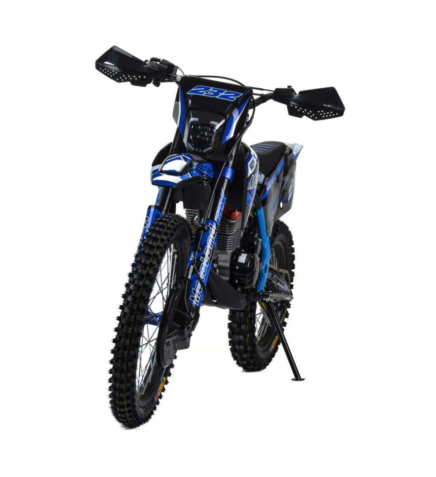 Новинка сезона 2024 года!Мотоцикл Кросс 300 XT300 HS (175FMM 4V) это отличный кроссовый мотоцикл. Имеет хорошую проходимость и тяговую мощность за счет установленного 4х клапанного двигателя 175FMM, мощностью 25 л.с., и карбюратором NIBBI PE 30.Разгоняется до 140 км/ч. Выхлопная система с резонатором, глушитель алюминиевый. Идеален для бездорожья, т.к. его кроссовые шины (110-100) и (80-100) просто созданы для езды по мягкому и среднему грунту.Телескопическая вилка перевернутого типа GPX c регулировкой (сжатие и отбой) с усиленными траверсами позволяет легко преодолевать ямы, ухабы и другие неровности. Задняя подвеска маятниковая с прогрессией – моноамортизатор с бачком и регулировкой на сжатие и отбой.Его дерзкий дизайн подчёркивает неуступчивый спортивный характер байка.Мотоцикл весит 120 кг, выдерживает нагрузку до 150 кг. Прочный облицовочный пластик не ломается при сгибании, защищает от грязи. Надёжно закрепленный руль имеет переменное сечение: 28 мм в месте крепления и 22 мм на концах под грипсами, а также короткоходную ручку газа. На мотоцикле установлена защита рук. Покрышки на алюминиевых ободах оснащены усиленными спицами и антибуксаторами, размер заднего колеса — 18 дюймов, переднего — 21 дюйм, крепятся на полые оси.Для запуска двигателя можно использовать электростартёр или кикстартёр. Система зажигания электронная (CDI). Механическая трансмиссия содержит 5 передач. У мотокросса отличный запас хода: объём топливного бака — 7 л, расход топлива — 5 л на 100 км. Передняя светодиодная линзованная фара обновленного дизайна легко включается поворотом замка зажигания и позволяет ездить в сумерках и темноте, возможность установки зеркал заднего вида. Карбоновая защита глушителя. Металлическая защита картера. Нейлоновая защита рамы. Цепь 520 с ловушкой. Задняя звезда алюминиевая. Ступица на 6 болтов. Увеличенный диаметр передней и задней осей колеса. Есть защита тормозного диска, защита рук и счетчик моточасов .Мотоцикл оснащён надёжными тормозами с передним двухпоршневым тормозным суппортом и задним однопоршневым тормозным суппортом. Передний тормозной диск оборудован защитой.
