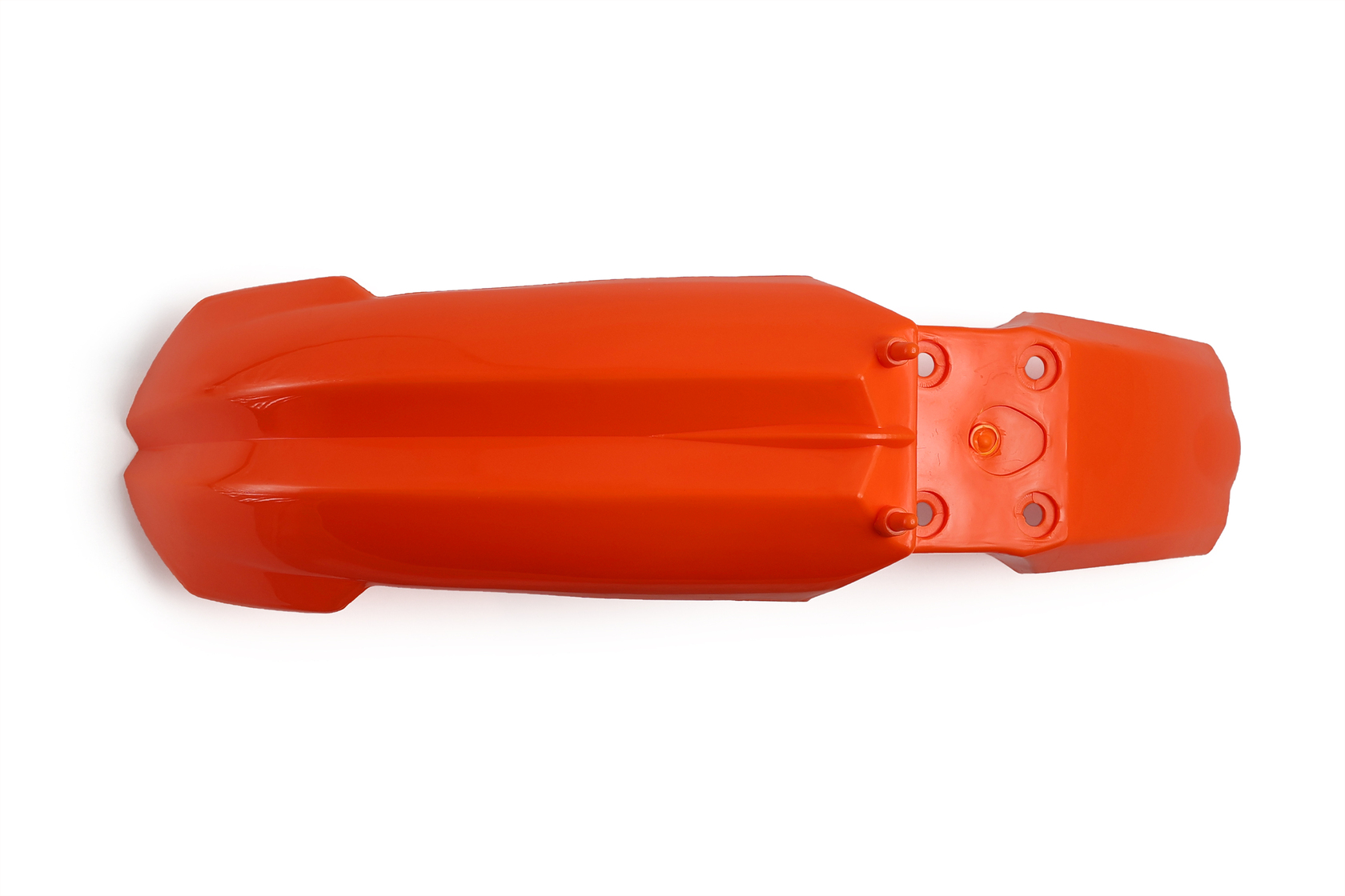 Оранжевое переднее крыло для мотоциклов KTM SX85 2013-2016 года, а также аналогичных китайских моделей на раме K5. Деталь изготовлена из высококачественного ударопрочного пластика по типу KTM SX85 и подходит для интенсивной эксплуатации в условиях эндуро. Полный аналог оригинального крыла KTM с артикулом 4710801000004. Крыло придаёт мотоциклу фирменный стиль KTM и обеспечивает надёжную защиту передней части от грязи и камней. Простая установка на штатные места без доработок.