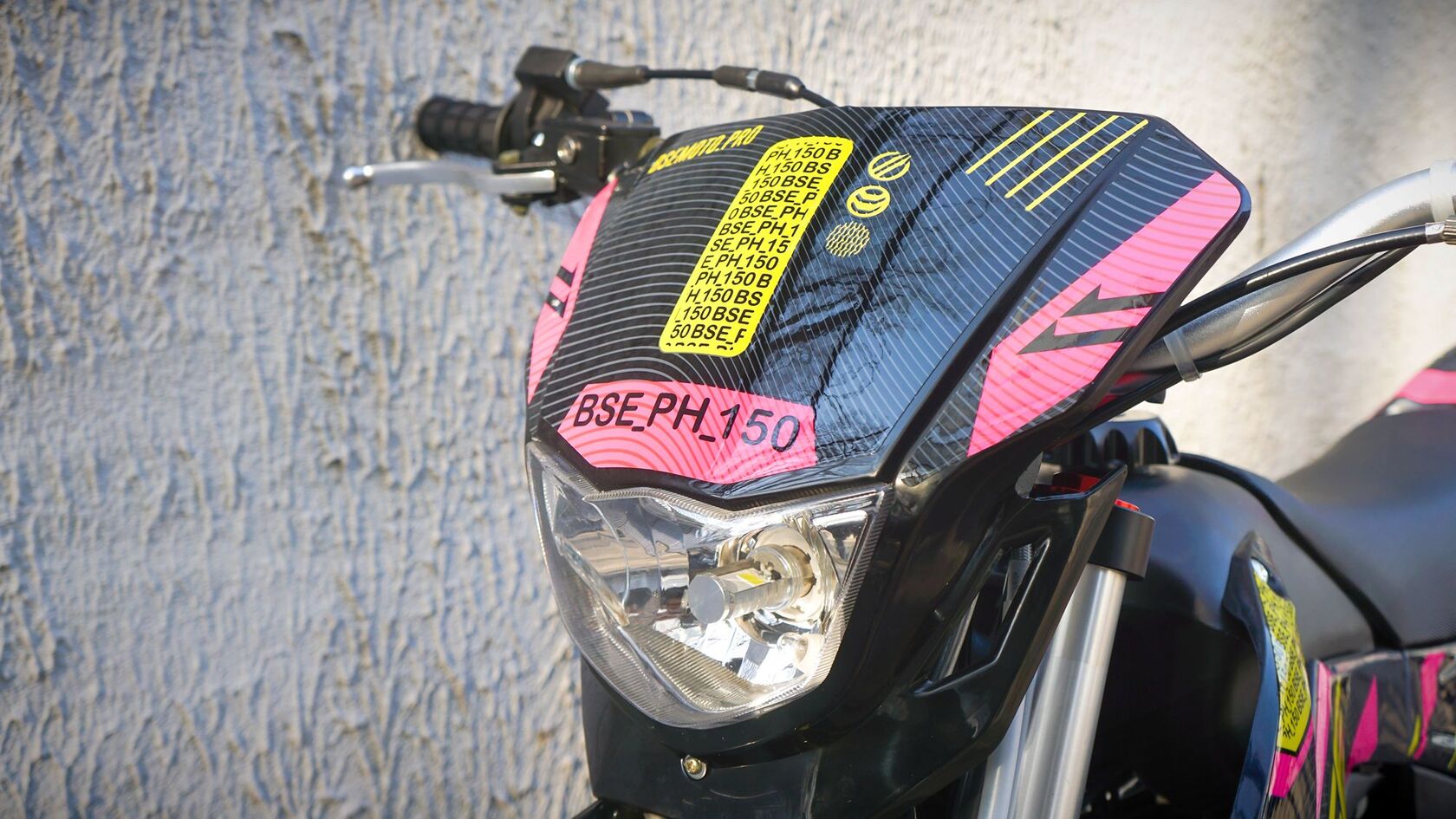 Питбайк BSE PH 150 19/16 AK47 Red (015). Основа PH150 - рама из хромомолибденовой стали повышенной жесткости с литыми усилителями - фирменный знак качества завода BOSUER! Cиловая установка питбайка - надежный и тяговитый 4-тактным двигателем YX объёмом 150 см3 с воздушным охлаждением. Максимальная мощность – внушительные 15 лс. Питает мотор карбюратор MIKUNI VM22. Питбайк оснащен 4-ступенчатой механической трансмиссией. Запуск мотора осуществляется при помощи электростартера или кик-стартера. Подвески с большими ходами: передняя - телескопическая вилка перевёрнуто типа, задняя- моноамортизатор. LED фара головного света, "злая" резина, vощная тормозная система HSK Racing, японские колесные подшипники NTN, защита мотора, руль ProTaper - питбайк полностью укомплектован всем необходимым для покатушек и гонок.PH150 – профессиональный выбор самого продвинутого "питбайкера".