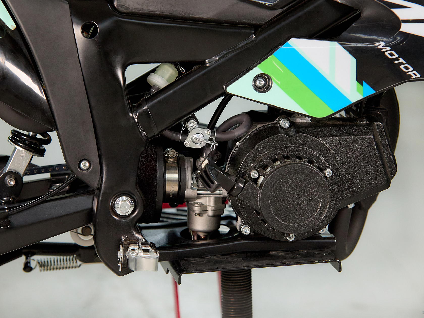 1Питбайк детский KAYO DBR SX50-A отличается простотой управления, чтобы юному райдеру, впервые севшему в седло питбайка, быстрее освоить навыки вождения и получать максимум удовольствия от езды.• Оснащён 2-х тактным 49-ти кубовым лёгким в обращении двигателем с принудительным воздушным охлаждением, который может выдавать максимальную мощность чуть более 2 лошадиных сил;