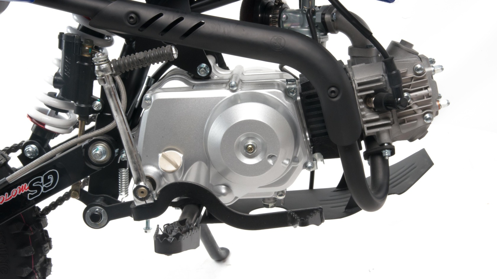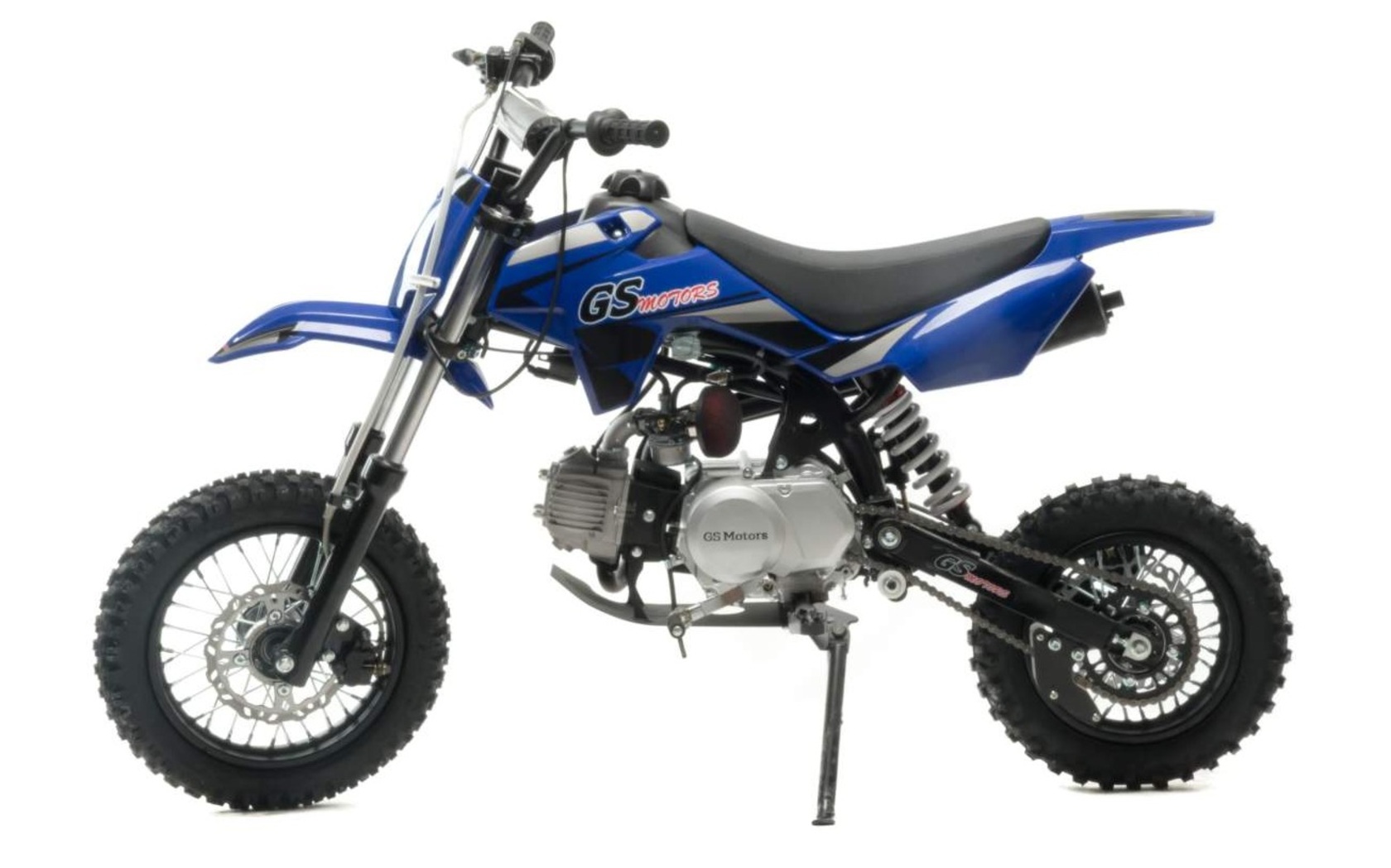 Питбайк Motoland GS Motors S11 идеально подходит для поездок по грунтовым дорогам и бездорожью для детей которые уже научились ездить на маленьких мотоциклах объемом 50 куб.см. Хорошо чувствует себя на мягком и среднем грунте.Питбайк прост в управлении и не требует специального ухода, подойдёт детям до 13 лет.Передняя подвеска — телескопическая нерегулируемая вилка. Задняя подвеска маятниковая с моноамортизатором. Руль 22 мм с высоким подъёмом и перекладиной удобен для мотоциклистов разного роста.Питбайк весит всего 55 кг, при этом выдерживает вес до 65 кг. Колёса спицованные, металлические. Размер заднего колеса — 10 дюймов, переднего — 12 дюймов. Тормоза дисковые, передний тормозной суппорт двухпоршневой, задний — однопоршневой.Питбайк оснащён карбюратором JINGKE и одноцилиндровым четырёхтактным двигателем с воздушным охлаждением. Надёжный мотор мощностью 8 л. с. и объемом 110 см³ разгоняет питбайк до 70 км/ч. Трансмиссия - 4х ступенчатая. Система зажигания электронная (CDI). Запуска двигателя - кикстартер.Покрышки с шипами и высоким грунтозацепом идеальны для бездорожья. Мощность мотора и небольшой вес питбайка позволяют ему преодолевать значительные препятствия и хорошо заходить в подъёмы.Питбайк относится к недорогим моделям, которые при должной эксплуатации работают без сбоев. При необходимости в нём легко сменить любую повреждённую деталь.