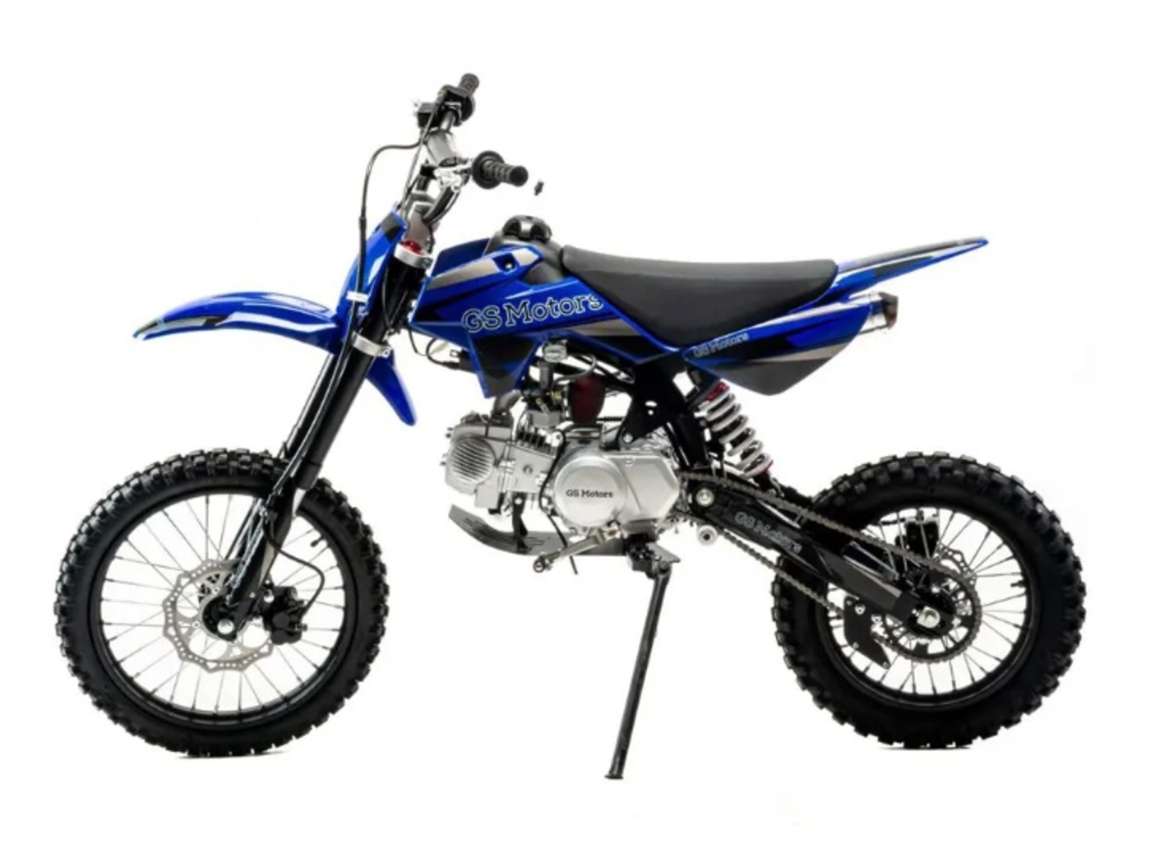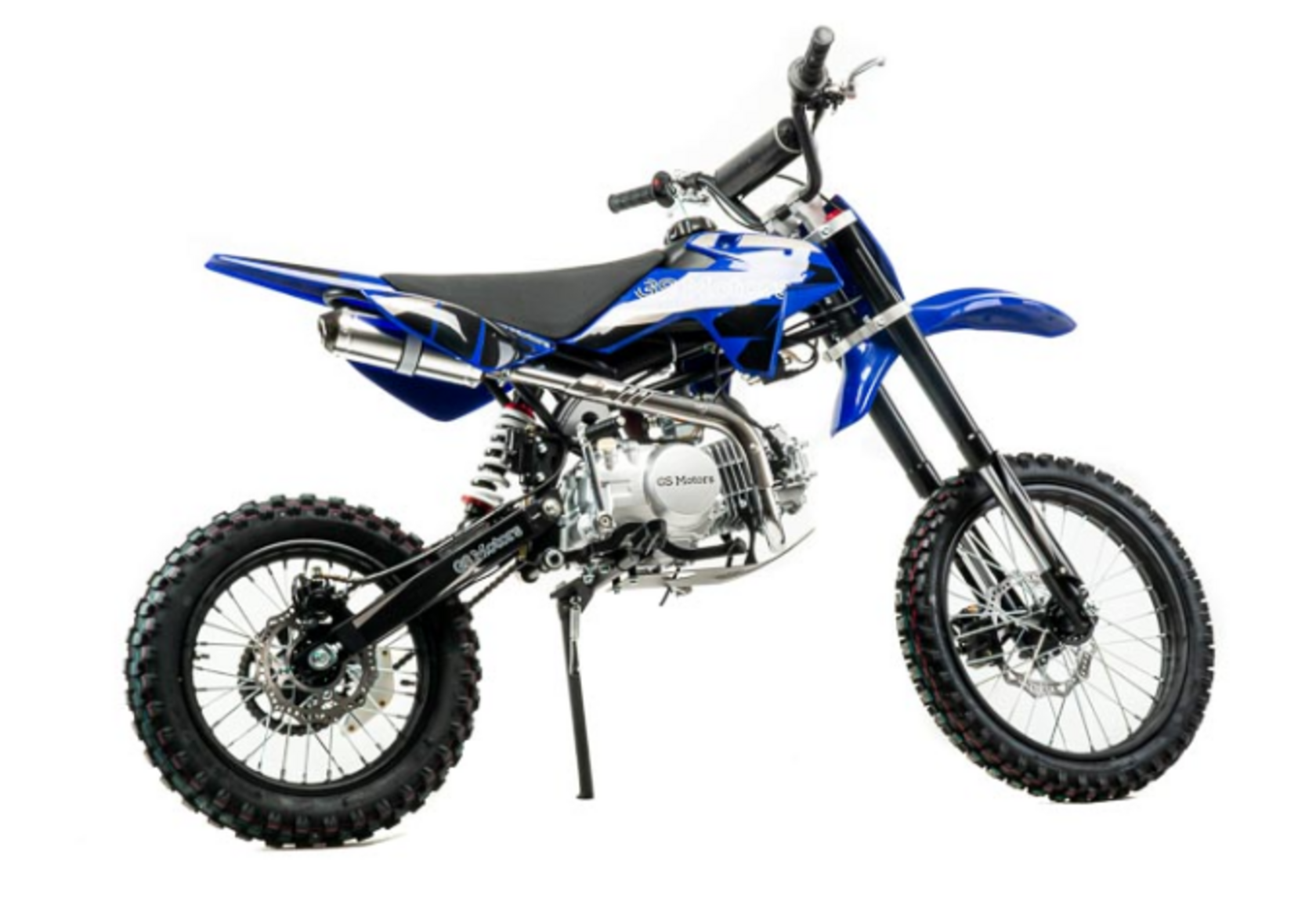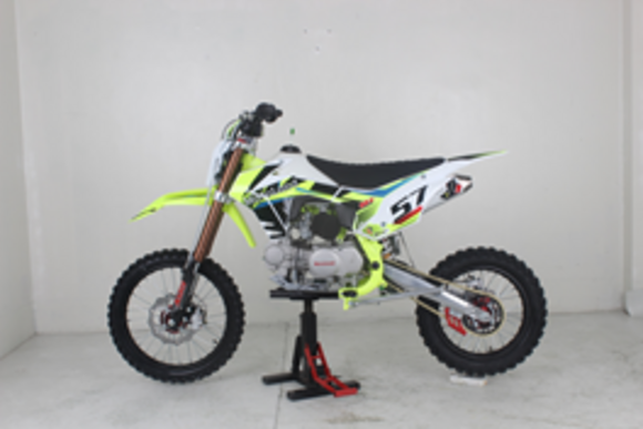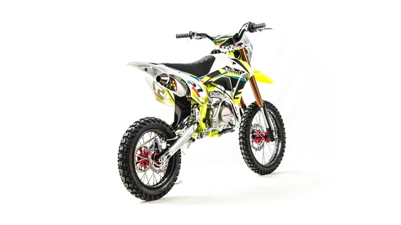Питбайк GS Motors S14 17/14 идеален для поездок по грунтовым дорогам и бездорожью. Хорошо чувствует себя на мягком и среднем грунте, разгоняется до 90 км/ч. Питбайк прост в управлении и не требует специального ухода, подойдёт как новичкам, так и любителям мотокросса.Конструкция подчёркивает неуступчивый спортивный характер, который не остановится ни перед одним препятствием.Передняя подвеска — телескопическая вилка перевёрнутого типа (с подкачкой воздуха), которая отлично подходит для преодоления ям, и других неровностей плохих дорог или их отсутствия. Задняя подвеска маятниковая с моноамортизатором.Питбайк оснащён карбюратором PZ27 и одноцилиндровым четырёхтактным двигателем 1P56YMJ с воздушным охлаждением, мощностью 11 л. с. и объемом 140 см³. Коробка передач механическая, четырёхступенчатая.Тормоза дисковые, передний тормозной суппорт двухпоршневой, задний — однопоршневой.Питбайк относится к недорогим моделям, которые при должной эксплуатации работают без сбоев. Не занимает много места в гараже. При необходимости в нём легко сменить любую повреждённую деталь.