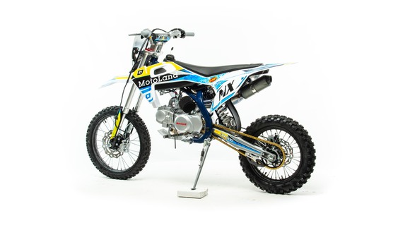 Питбайк MotoLand JKS 140 идеален для поездок по грунтовым дорогам и бездорожью. Хорошо чувствует себя на мягком и среднем грунте, разгоняется до 90 км/ч. Оснащён CNC траверсами, фарой, алюминиевыми ободами, весит всего 75 кг. Питбайк прост в управлении и не требует специального ухода, подойдёт как новичкам, так и любителям мотокросса.У кроссового мотоцикла мотоленд JKS 140 отличный узнаваемый дизайн. Конструкция подчёркивает неуступчивый спортивный характер питбайка, который не остановится ни перед одним препятствием. Пластик комбинированный, прочный, не ломается при сгибании. Передняя подвеска — телескопическая нерегулируемая вилка перевёрнутого типа, которая отлично подходит для преодоления ям, ухабов и других неровностей плохих дорог или их отсутствия. Задняя подвеска маятниковая с моноамортизатором. Питбайк оснащён складными рычагами сцепления и переднего тормоза, а также CNC-лапкой переключения передач.Колёса спицованные, сделаны из прочного и лёгкого алюминия. Размер заднего колеса — 14 дюймов (350 мм), переднего — 17 дюйм (430 мм). Тормоза дисковые, передний тормозной суппорт двухпоршневой, задний — однопоршневой.Питбайк оснащён карбюратором с фильтром нулевого сопротивления MIKUNI VM22 и одноцилиндровым четырёхтактным двигателем с воздушным охлаждением. Надёжный мотор мощностью 11,1 л. с. и объемом 140 см³ разгоняет кроссовый мотоцикл мотоленд Апекс 140 до 90 км/ч. Коробка передач механическая, четырёхступенчатая. Система зажигания электронная (CDI), для запуска двигателя использовать кикстартер.Сверхпроходимость.Покрышки с шипами и высоким грунтозацепом идеальны для бездорожья. Мощность мотора и небольшой вес питбайка позволяют ему преодолевать значительные препятствия и непролазную грязь, хорошо заходить в подъёмы.Для поездок при низкой видимости и в ночное время суток питбайк JKS 140 оснащён фарой, которая включается при повороте замка зажигания (1 – выключить, 2 – включить, 3 – свет).Питбайк относится к недорогим моделям, которые при должной эксплуатации работают без сбоев и капризов. Кросс неприхотлив в обслуживании, не занимает много места в гараже. При необходимости в нём легко сменить любую повреждённую деталь.
