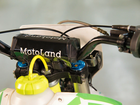 Питбайк Motoland TCX125 14/12 идеален для поездок по грунтовым дорогам и бездорожью. Хорошо чувствует себя на мягком и среднем грунте, разгоняется до 90 км/ч. Оснащён спортивными траверсами, весит всего 70 кг.Питбайк прост в управлении и не требует специального ухода, подойдёт как новичкам, так и любителям мотокросса.Питбайка отличный узнаваемый дизайн. Конструкция подчёркивает неуступчивый спортивный характер, который не остановится ни перед одним препятствием.Комбинированный прочный пластик не ломается при сгибании.Передняя подвеска — телескопическая вилка перевёрнутого типа (с регулировкой по давлению воздуха), которая отлично подходит для преодоления ям, и других неровностей плохих дорог или их отсутствия. Задняя подвеска маятниковая с моноамортизатором. Мотоцикл оснащён одноцилиндровым четырёхтактным двигателем с воздушным охлаждением. Надёжный мотор 152FMI мощностью 8 л. с. и объемом 125 см³ , установленный на усиленной стальной раме, коробка передач автоматическая, четырёхступенчатая.Тормоза дисковые, передний тормозной суппорт двухпоршневой, задний — однопоршневой.Питбайк относится к недорогим моделям, которые при должной эксплуатации работают без сбоев. Не занимает много места в гараже. При необходимости в нём легко сменить любую повреждённую деталь.