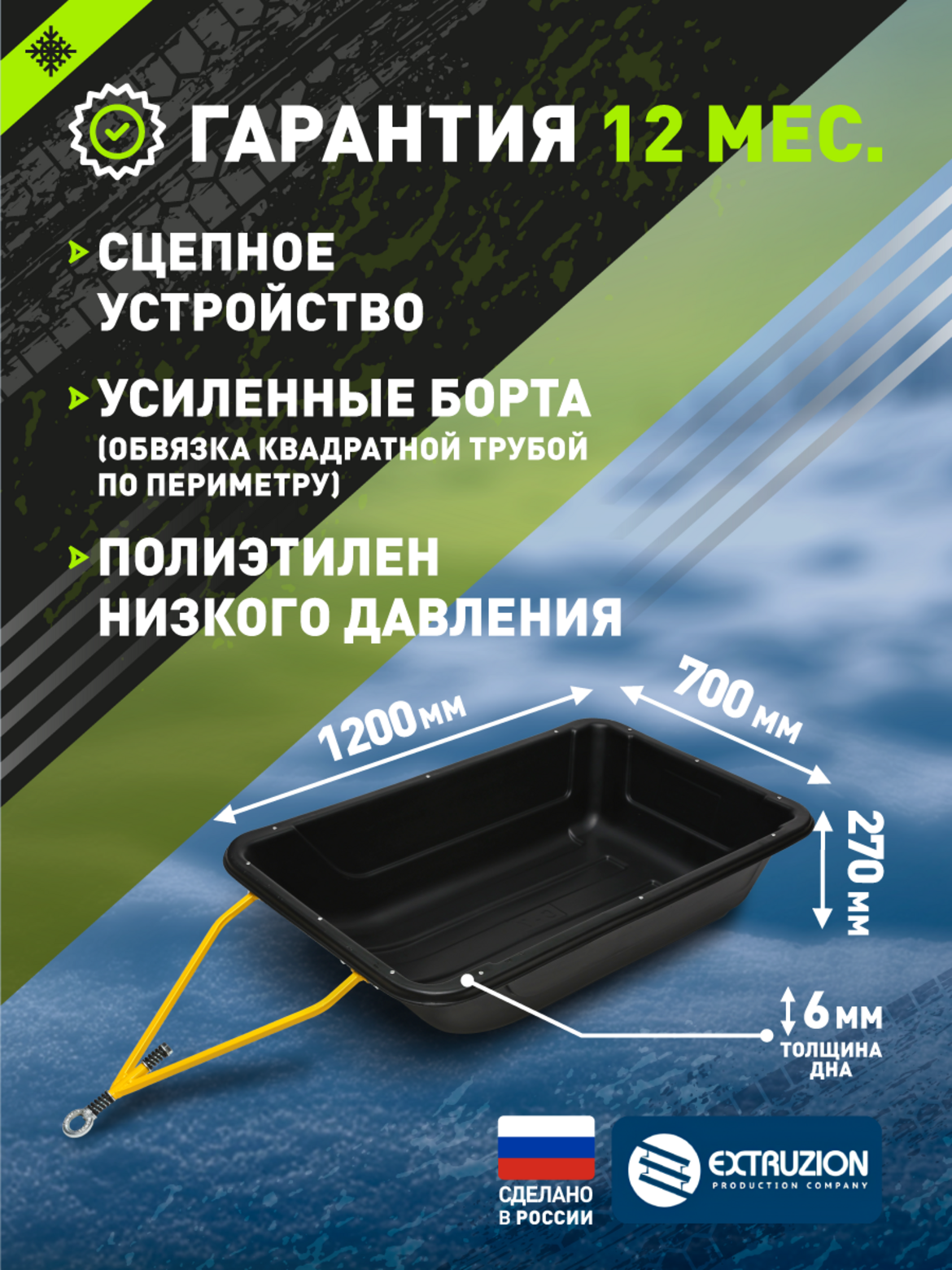 • Надежные сани-прицеп для снегоходов и мотобуксировщиков, готовые к работе в самых суровых зимних условиях. Идеальный баланс объема и маневренности.