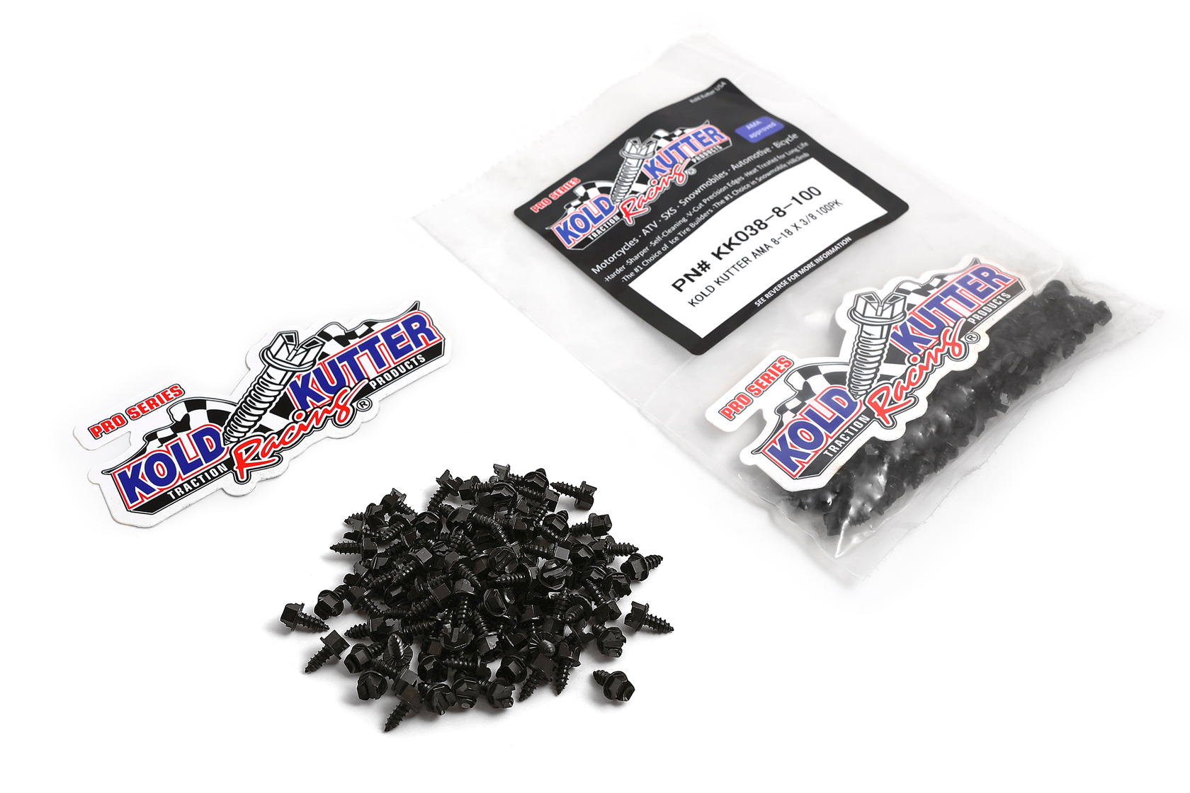 Вкручивающиеся шипы KOLD KUTTER для эндуро мотоциклов. Размер шипа 3/8 дюйма (9,5 мм) с резьбой M8. Упаковка содержит 100 штук. Обеспечивают улучшение сцепления на льду, укатанном снегу и мокрых обледенелых дорогах. Компактный размер идеален для использования в условиях, где важна меньшая агрессивность шипов без потери эффективности.