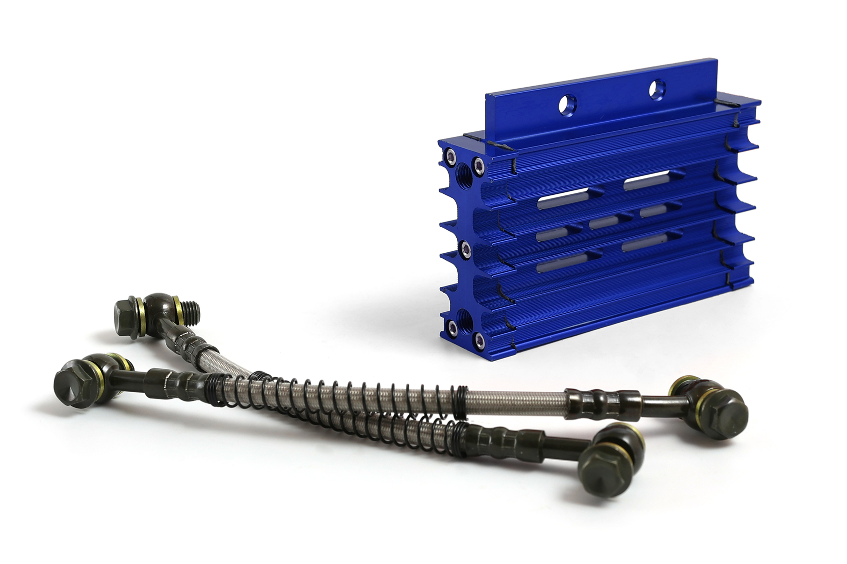 Высококачественный комплект радиатора масляного охлаждения с корпусом из прочного CNC-обработанного алюминия, с ярким синим анодированным покрытием. Предназначен для установки на 90% питбайков и мопедов с объёмом двигателя от 125 до 190 см³. Эффективно охлаждает масло, предотвращая перегрев двигателя и увеличивая его ресурс, особенно при активной эксплуатации.