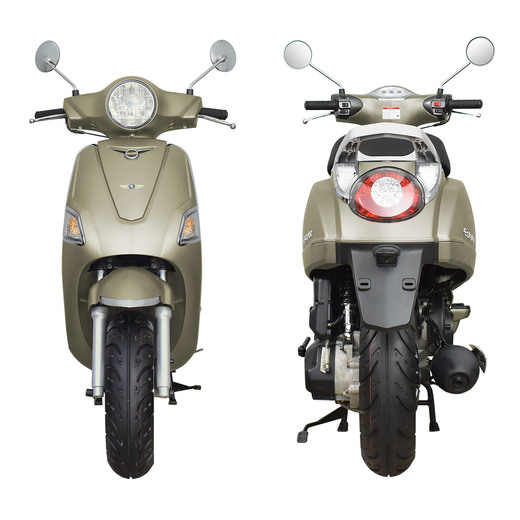 Экономичный 4-тактный двигатель объемом в 49см3 отлично себя зарекомендовал и в плане надежности, и в плане производительности. Развиваемой мотором мощности вполне достаточно для поездок по городским дорогам и пригороду. Дисковый передний тормоз обеспечивает необходимую тормозную мощность, а задний барабанный тормоз выдает бюджет этого скутера. Комфорт использования мопеда Regulmoto Eagle 50 обеспечивают автоматическая трансмиссия, электростартер, хорошо читаемая приборная панель, широкое сиденье, центральная и боковая подножки, полный комплект светового оборудования и зеркала заднего вида.