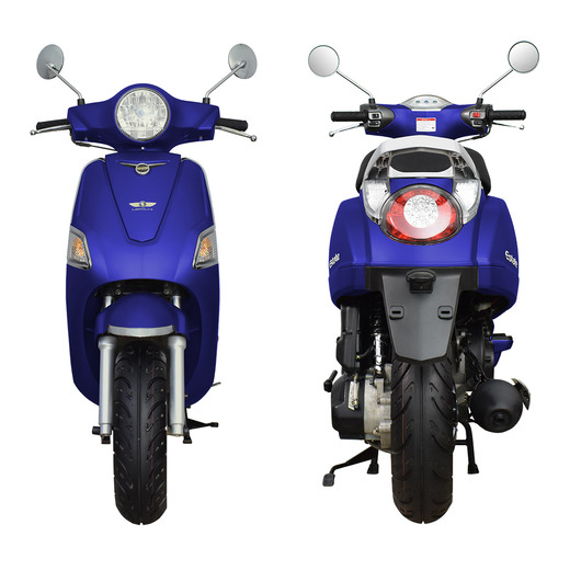 Комплектация За безопасность эксплуатации отвечают дисковый тормоз на переднем колесе и традиционный «барабан» в ступице заднего колеса. Небольшой багажник сзади предоставляет возможность установки кофра для перевозки или хранения мотошлема. Зеркала заднего вида, центральная подножка.