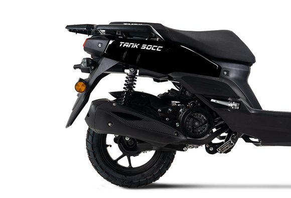 TMBK TANK — это не просто скутер, а настоящий городской вездеход, готовый к любым приключениям. Он спроектирован для того, чтобы с легкостью справляться с колдобинами и ухабами города, а также для поездок за его пределы, где нет асфальта, но есть желание двигаться вперед.TANK — ваш идеальный спутник, который будет незаменим как в повседневных городских поездках, так и в более длинных путешествиях. Мощный, надежный и с отличной грузоподъемностью, он готов выполнить любую задачу — от утренней поездки за хлебом до путешествия по бездорожью и даже кругосветного турне.Мощность и экономичностьСкутер TMBK TANK оснащен мощным, но экономичным двигателем, который обеспечивает отличную динамику в городских условиях и уверенность на сельских дорогах. Благодаря низкой степени сжатия мотора, ваши поездки будут не только быстрыми, но и экономными — минимальный расход топлива позволяет не думать о заправках, наслаждаясь каждой минутой дороги. Это идеальное сочетание мощности и экономии!ГрузоподъемностьTMBK TANK — это скутер, который точно оценит каждый, кто часто перевозил грузы. К стандартному вместительному отсеку под сиденьем добавляются дополнительные возможности: площадка для кофра и небольшой багажник над фарой. Площадка расширяет грузовой потенциал, а багажник позволяет быстро зафиксировать мелкие вещи, не перекрывая важные световые приборы. Все продумано до мелочей, чтобы обеспечить вам максимальный комфорт и удобство при перевозке всего необходимого.Защита и комфортTMBK TANK не только справляется с любыми дорогами, но и защищает вас в любых условиях. Дополнительные дуги безопасности защищают пластиковые элементы при падении, а защита рук спасет вас от грязи, веток и камней на бездорожье, гарантируя комфорт в любую погоду — будь то дождь, ветер или снег. Ваши руки всегда будут защищены, даже в самых сложных условиях.ДизайнУникальный утилитарный дизайн не только выделяет TMBK TANK на фоне других скутеров, но и способствует повышенной проходимости. TANK с легкостью преодолевает любые препятствия, будь то неровности на дорогах, грязь или песок. Эта модель скутера идеально подходит для поездок по всем видам дорог и станет вашим лучшим другом как в городе, так и за его пределами.TMBK TANK — ваш верный спутник в любых путешествиях, который обеспечит удобство, комфорт и уверенность на каждом километре дороги. Готовы к новым приключениям? Тогда TMBK TANK ждет вас!