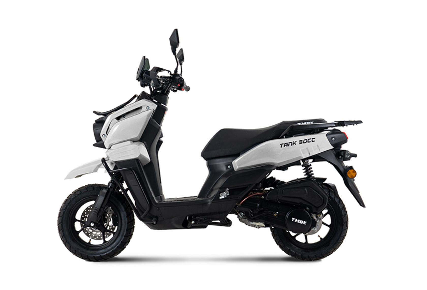 TMBK TANK — это не просто скутер, а настоящий городской вездеход, готовый к любым приключениям. Он спроектирован для того, чтобы с легкостью справляться с колдобинами и ухабами города, а также для поездок за его пределы, где нет асфальта, но есть желание двигаться вперед.TANK — ваш идеальный спутник, который будет незаменим как в повседневных городских поездках, так и в более длинных путешествиях. Мощный, надежный и с отличной грузоподъемностью, он готов выполнить любую задачу — от утренней поездки за хлебом до путешествия по бездорожью и даже кругосветного турне.Мощность и экономичностьСкутер TMBK TANK оснащен мощным, но экономичным двигателем, который обеспечивает отличную динамику в городских условиях и уверенность на сельских дорогах. Благодаря низкой степени сжатия мотора, ваши поездки будут не только быстрыми, но и экономными — минимальный расход топлива позволяет не думать о заправках, наслаждаясь каждой минутой дороги. Это идеальное сочетание мощности и экономии!ГрузоподъемностьTMBK TANK — это скутер, который точно оценит каждый, кто часто перевозил грузы. К стандартному вместительному отсеку под сиденьем добавляются дополнительные возможности: площадка для кофра и небольшой багажник над фарой. Площадка расширяет грузовой потенциал, а багажник позволяет быстро зафиксировать мелкие вещи, не перекрывая важные световые приборы. Все продумано до мелочей, чтобы обеспечить вам максимальный комфорт и удобство при перевозке всего необходимого.Защита и комфортTMBK TANK не только справляется с любыми дорогами, но и защищает вас в любых условиях. Дополнительные дуги безопасности защищают пластиковые элементы при падении, а защита рук спасет вас от грязи, веток и камней на бездорожье, гарантируя комфорт в любую погоду — будь то дождь, ветер или снег. Ваши руки всегда будут защищены, даже в самых сложных условиях.ДизайнУникальный утилитарный дизайн не только выделяет TMBK TANK на фоне других скутеров, но и способствует повышенной проходимости. TANK с легкостью преодолевает любые препятствия, будь то неровности на дорогах, грязь или песок. Эта модель скутера идеально подходит для поездок по всем видам дорог и станет вашим лучшим другом как в городе, так и за его пределами.TMBK TANK — ваш верный спутник в любых путешествиях, который обеспечит удобство, комфорт и уверенность на каждом километре дороги. Готовы к новым приключениям? Тогда TMBK TANK ждет вас!
