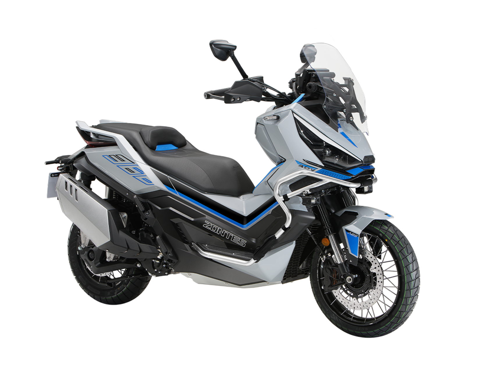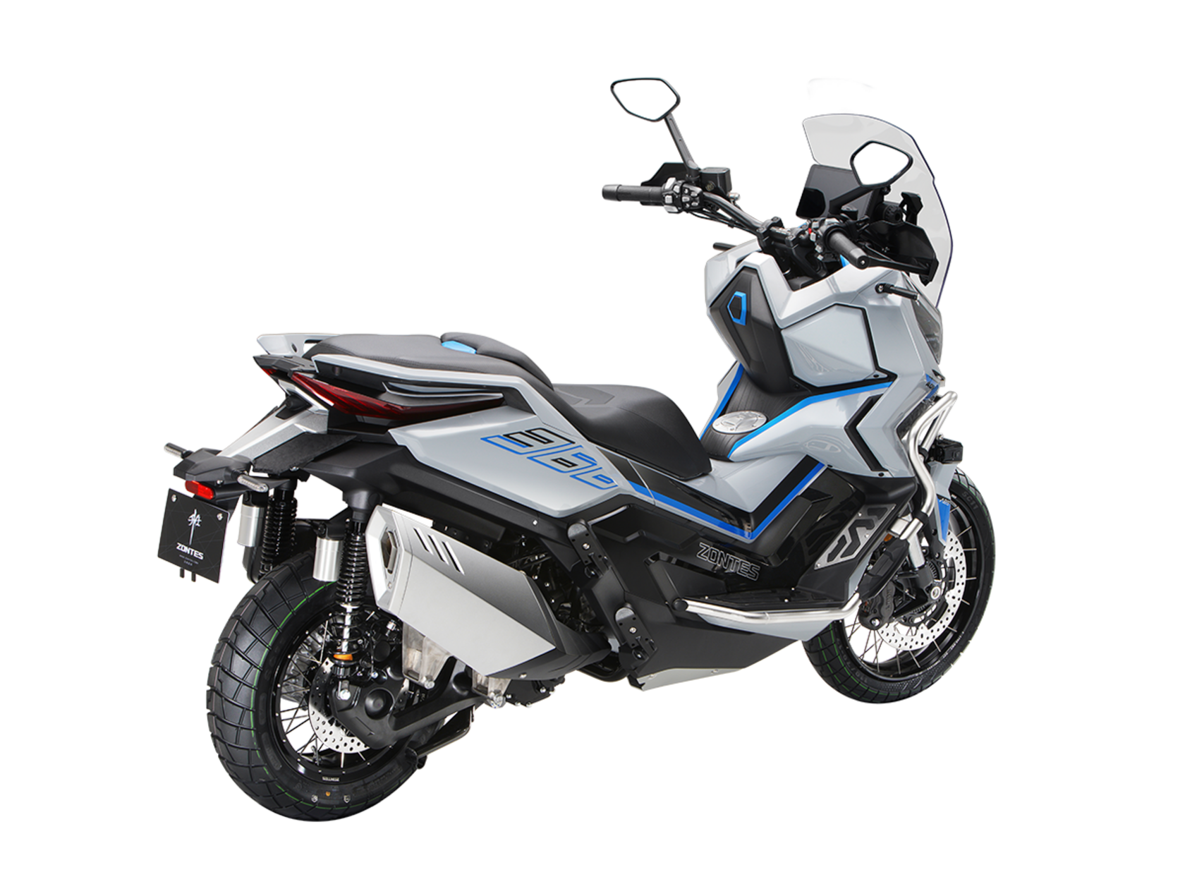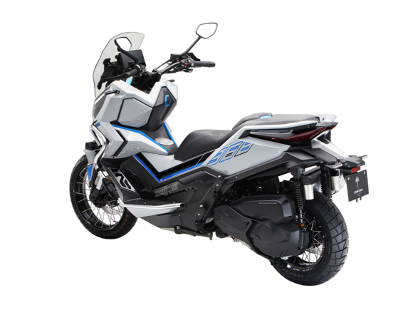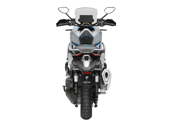 Скутер ZONTES ZT368-G – максискутер двойного назначения, готовый пронестись по улицам города за его пределы и отправиться по грунтовым тропам прокладывать свой маршрут туда, куда вам потребуется. Регулируемая подвеска с перевёрнутой телескопической вилкой спереди обеспечит отличную управляемость и устойчивость в любых условиях.Силовая установка представлена одноцилиндровым 4-тактным двигателем. Двигатель имеет объём 368 см³ и обеспечивает мощность в 38,8 л.с. Оснащён инжектором BOSCH, системой жидкостного охлаждения и вариатором. Запуск двигателя осуществляется с помощью бесключевого доступа.Ёмкость топливного бака 17,5 литра.Колёса имеют диаметр 17 дюймов спереди и 14 дюймов сзади. Для подвески спереди используется телескопическая вилка перевёрнутого типа, а сзади установлены 2 гидравлических амортизатора. Гидравлические дисковые тормоза произведены компанией J.JUAN, входящей в холдинг BREMBO. Мотоцикл также оснащён 2-канальной ABS-системой, противобуксовочной системой TCS System и датчиками давления в шинах.ZT350-G оборудован яркой LED-фарой, мультимедийной приборной панелью с TFT-дисплеем, имеются 2 USB-порта.Габариты скутера 2230х925х1290 мм. Колёсная база 1560 мм. Высота по седлу 795 мм. Вес 198 кг.