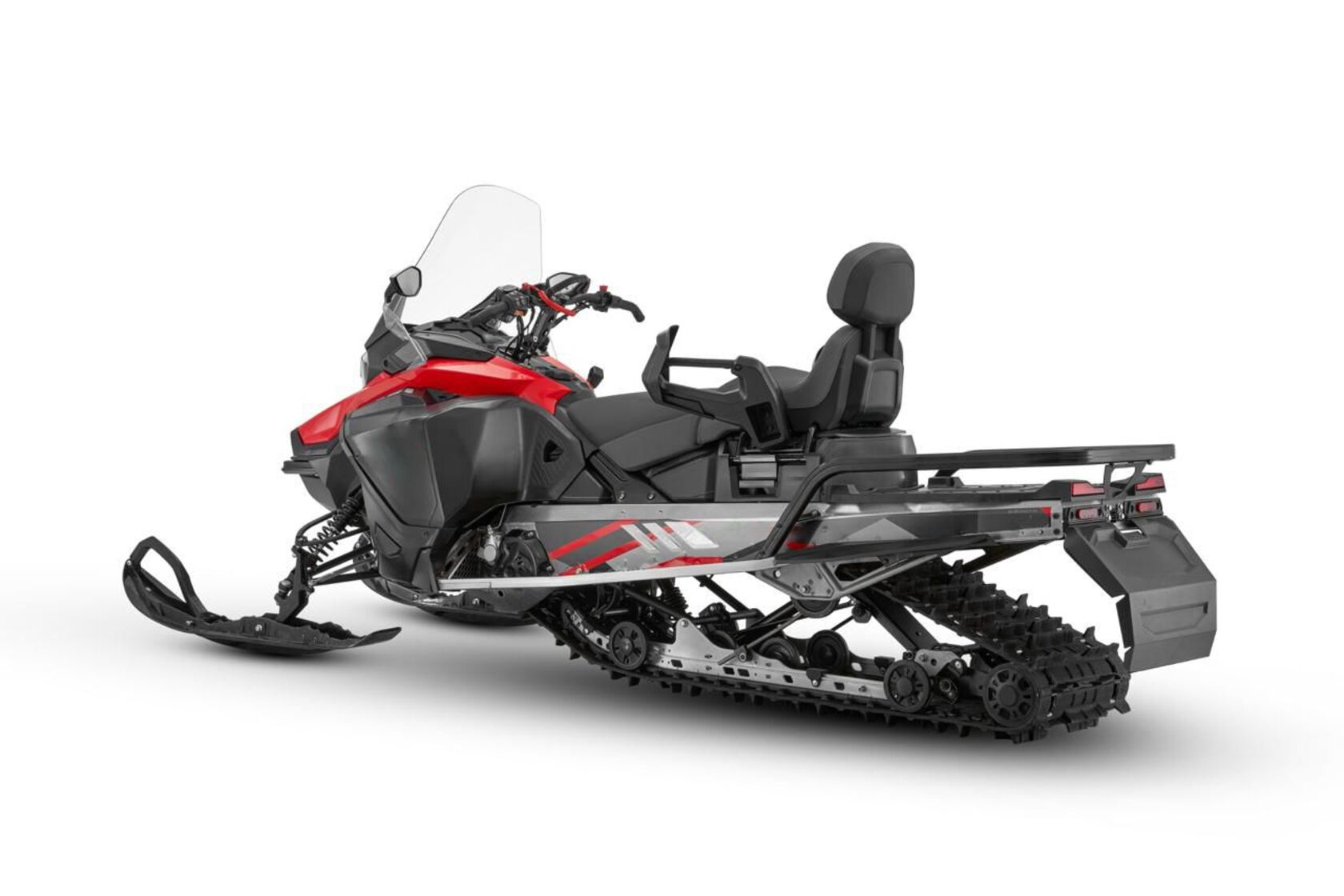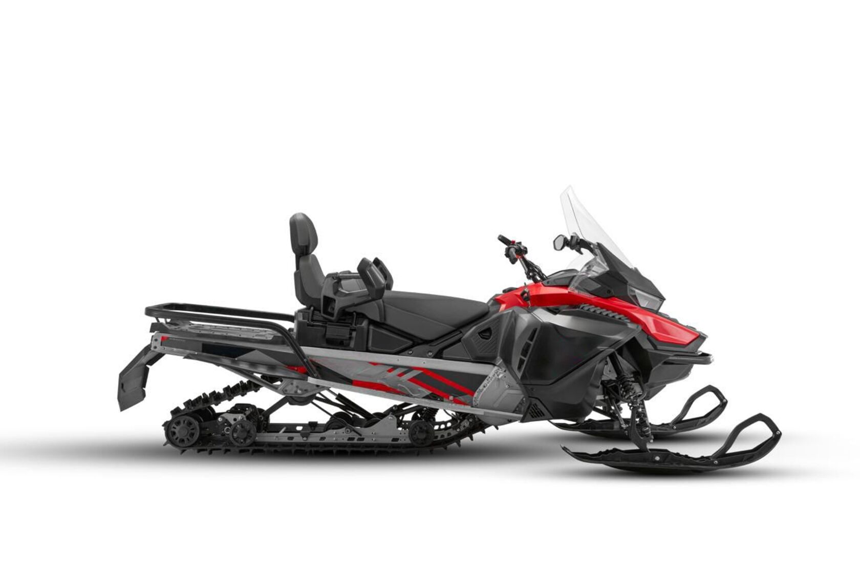 Снегоход Таврида — это техника, созданная для тех, кто не боится зимы и предпочитает свободу движения там, где дороги заканчиваются. В его основе — современный трёхцилиндровый рядный двигатель объёмом почти 900 кубических сантиметров. Это четырёхтактный мотор с двумя верхними распредвалами (DOHC) и жидкостным охлаждением, что гарантирует стабильную работу в самых суровых условиях. Снегоход развивает до 97 лошадиных сил и выдаёт внушительные 93 Н·м крутящего момента на пике мощности. Этой силы хватает не только для уверенного разгона по укатанной трассе, но и для того, чтобы пробиваться сквозь глубокий снег.Система питания — современный электронный впрыск топлива (EFI), благодаря которому двигатель запускается легко, работает ровно и экономично расходует топливо. Для запуска используется электростартер, что делает эксплуатацию ещё комфортнее. Рекомендуемое топливо — привычный бензин АИ-92 или АИ-95.В движение снегоход приводит надёжный вариатор CVT, который сочетает простоту управления с эффективной передачей мощности. Конструкция предусматривает несколько режимов — пониженный, повышенный, нейтраль, а также электронный реверс для движения назад. Такое решение позволяет одинаково уверенно чувствовать себя и при медленном маневрировании, и на высоких скоростях.Ходовая часть снегохода продумана до мелочей. Спереди установлена независимая подвеска с А-образными рычагами и стабилизатором поперечной устойчивости. Пружины в сочетании с масляными амортизаторами обеспечивают мягкий ход, сглаживая неровности и добавляя уверенности в управлении. Сзади используется склизовая подвеска с ограничителем хода, что позволяет эффективно распределять нагрузку и сохранять устойчивость даже при перевозке груза. Тормозная система у «Тавриды» также внушает доверие: дисковый гидравлический тормоз с двухпоршневым суппортом обеспечивает надёжное замедление в любых условиях, будь то ледяная корка или рыхлый снег.Снегоход впечатляет и своими скоростными характеристиками: максимальная скорость достигает 172 км/ч, что делает его отличным выбором не только для утилитарных задач, но и для любителей адреналина. При этом высокая тяга на низких оборотах позволяет уверенно двигаться даже по тяжёлой целине.Конструкция шасси также подчеркивает универсальность модели. Длинные лыжи (1070 мм) и гусеница шириной почти полметра создают оптимальное пятно контакта, а регулируемая ширина колеи позволяет подстраивать поведение снегохода под стиль езды. Высота грунтозацепа в 38 мм даёт отличное сцепление на рыхлом снегу.Несмотря на внушительные размеры (3400 × 1170 × 1500 мм), снегоход остаётся достаточно удобным в управлении. Высота седла подобрана так, чтобы обеспечивать комфорт при длительных поездках: до сиденья всего 978 мм, а значит посадка остаётся устойчивой и естественной. Сухой вес техники составляет 315 кг, а грузоподъёмность достигает 238 кг — этого достаточно, чтобы взять с собой всё необходимое снаряжение или пассажира. Крупный топливный бак объёмом 42 литра позволяет совершать длительные путешествия без частых дозаправок.Снегоход Таврида — это мощь и надёжность, упакованные в современный дизайн и продуманную конструкцию. Он одинаково хорошо подходит для активного отдыха и серьёзной работы, уверенно чувствуя себя и на трассе, и в условиях настояще