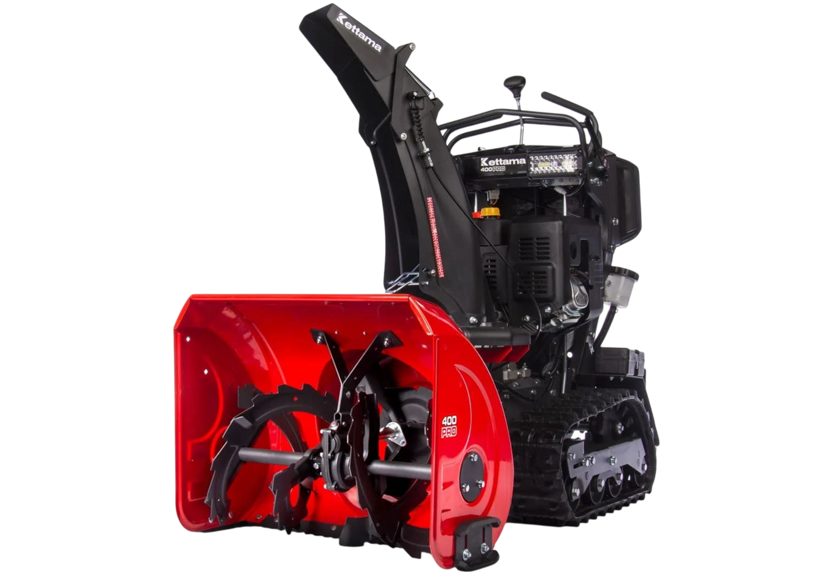 Профессиональная гусеничная снегоуборочная машина Kettama 400 Pro Hydrostatic оснащена гидростатической трансмиссией и вариаторной коробкой передач Multitronic с повышенным крутящим моментом до 300 Нм. При этом агрегат обладает компактными размерами и самой высокой среди аналогов производительностью до 32 т/ч при работе со снегом до 250 кг/м3 (за 30 минут можно очистить территорию в 40 парковочных мест). Машина способна убирать не только обычный снег, но и максимально плотный мокрый снег с элементами льда, плотностью до 550-600 кг/м3. Снегоуборщик оснащён инновационной системой дифференциала с ЭБУ, позволяющей делать нулевой радиус разворота.Серия снегоуборщиков Pro предназначена для уборки территорий торговых центров, спортивных и туристических баз, санаториев и домов отдыха, парков, фермерских хозяйств, загородных коттеджей.Профессиональный двигатель премиум-классаТехнология OHV с верхним расположением клапанов способствует эффективному распределению топливной смеси и практически полному сгоранию, обеспечивая чистоту выхлопа и высокий КПД. Чугунная гильза цилиндра, высококачественные материалы и чёткая подгонка компонентов увеличивают ресурс двигателя. Мотор соответствует экологическим требованиям CARB и EPA.Профессиональная двухступенчатая система выброса снегаСтупень 1 – смещённый угол шнека, усиленный дополнительными ребрами жёсткости, центральным ледорубом и подвесом редуктора, акцентированно измельчают и взбивают снежную массу, благодаря чему увеличивается дальность выброса снега и облегчается нагрузка на двигатель.Ступень 2 – крыльчатка специальной лопаточной формы с рёбрами жесткости и частотой вращения 1200 об/мин. Лопасти крыльчатки выполнены с добавлением хроммомолибденового сплава и усилены металлическими пластинами. Такая конструкция позволяет отбрасывать снег на расстояние до 18 метров.Комплексная система удаления ледяного наста Icebreaker HSTСистема представляет собой сочетание нескольких элементов, которое позволяет работать в самых сложных условиях. Она включает:- Низкий центр тяжести, смещённый в сторону ковша, что позволяет машине эффективно удалять нижние слои ледяного наста.