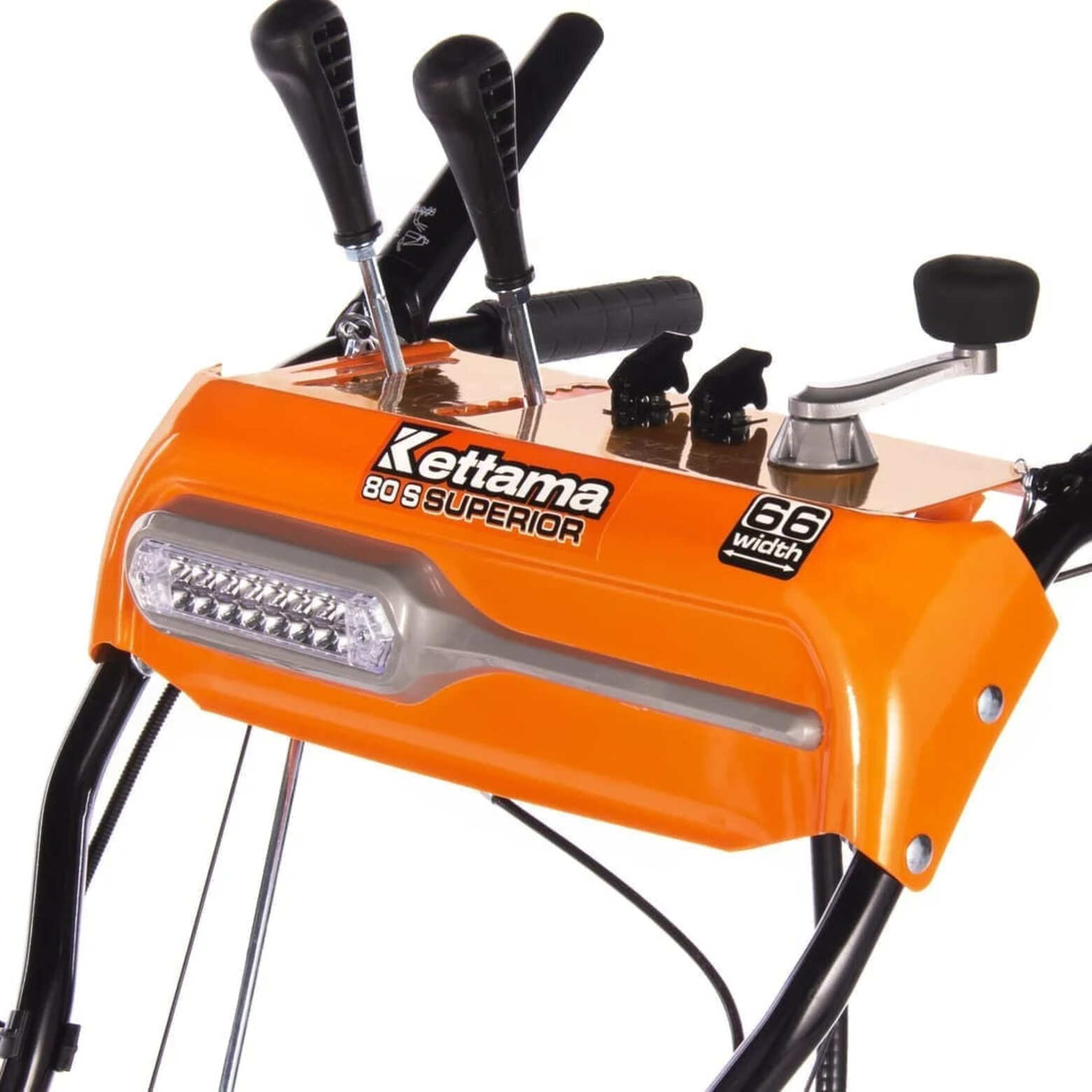 Снегоуборочная машина Kettama 80S Superior представляет собой «младшую» модель линейки Superior. Однако она также обладает всеми её основными преимуществами. Снегоуборщики линейки Superior, выпускаемые компанией Kettama, представляет собой класс полупрофессиональной техники. Основными отличиями от класса бытовой техники являются повышенная производительность и рабочая ресурсность.На Kettama 80S установлены безвоздушные шины SnowLink с технологией Runflat. Эти шины с глубоким протектором исключают пробуксовку агрегата на обледенелом участке. Увеличенное сцепление даёт возможность достичь показателей производительности практически равных гусеничному шасси. При этом, более низкий общий вес снегоуборщика позволяет достигать на этой модели показателей производительности до 5 т/ч со снегом плотностью до 500 кг/м3 (сброшенный с крыш). На свежевыпавшем влажном снегу плотностью до 200-230 кг/м3 этот снегоуборщик способен достигать производительности до 15 т/ч. Шины позволяют достигать высокого сцепления и повышенной производительности даже во время поворотов.Возможность эффективно перерабатывать снег разных типов сложности связана с конструкторским решением сочетания высокой мощности (8,5 л. с.), небольшой ширины уборки (660 мм) и усиленным сцеплением 14-дюймовых безвоздушных шин Runflat. Небольшая ширина ковша даёт возможность эксплуатировать технику на любом приусадебном участке с узкими дорожками. Повышенная высота ковша даёт возможность применения этой техники при работе с более высоким снегом. Однако это же создаёт определённые ограничения в работе с лежалым снегом с элементами сухого фирна. Дефлектор из усиленного металла позволяет менять направление выброса снега на 190 градусов при помощи рукоятки на корпусе машины. Стальной шнек с добавлением хромомолибденового сплава позволяет эффективно справляться даже со слежавшимся снегом.Скорость уборки: 6 передач вперёд и 2 назад, что позволяет выбрать оптимальный режим работы в зависимости от сложности задачи и типа снега. Металлическая рама с добавлением холодостойкого нихрома обеспечивает долговечность конструкции и возможность работать даже при экстремально низких температурах. Снегоуборщики Kettama. Наша техника станет для вас отличным подспорьем в уборке льда. Надёжный и стабильный двигатель с длительной гарантией, обеспечиваемой опытными специалистами, всегда вас выручит в момент нужды и избавит от лишней мороки. При этом нашим инженерам удалось добиться достойного соотношения качества к цене. Это позволит облегчить жизнь Вам и Вашей семье, не получив серьёзного урона по кошельку.Снегоуборщики Kettama являются одними из самых передовых и технологичных на российском рынке. Несмотря на свой привлекательный внешний вид, дизайн предельно прост и функционален, что повышает надёжность техники, исключая случайные поломки и снижая частоту обслуживания даже при регулярном использовании. Специально разработанные шнеки-ледорубы с агрессивным строением лезвий позволяет избавляться от любого, даже замёрзшего снега, и даже льда. Благодаря им Вы просто не будете знать, что есть непреодолимые препятствия. Специально разработанная система направляющих механизмов позволяют регулировать наклон и положение ковша, давая возможность адаптировать механизм под любые ситуации. Проверенные временем и сотнями ты